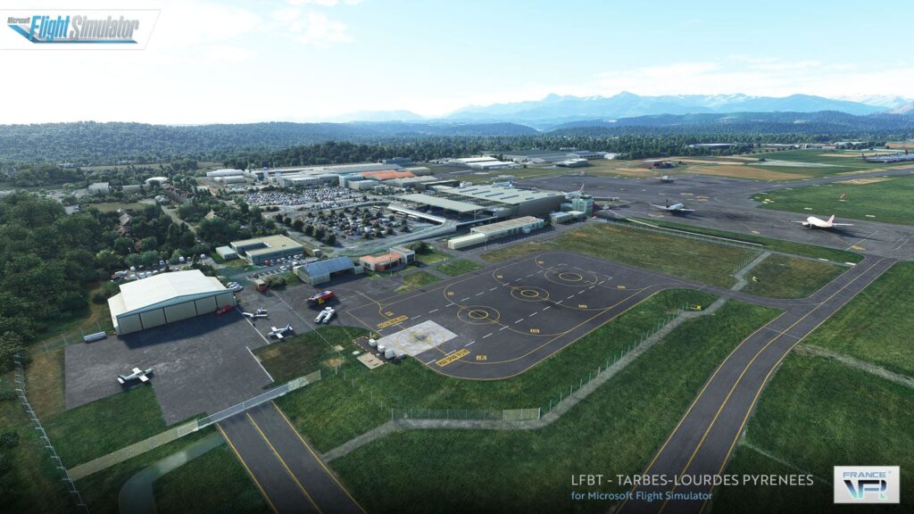 Die Szenerie LFBT Tarbes-Lourdes Pyrénées von France VFR für den Microsoft Flight Simulator ist eine hochwertige Szenerie für alle, die gerne in Frankreich fliegen. Dieses Add-on bietet eine genaue Darstellung des regionalen Flughafens in den Ausläufern der Pyrenäen-Gebirgskette.