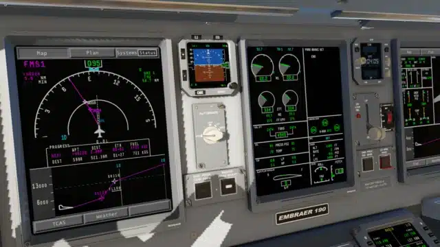- Navigationsanzeige (ND) mit genauen Funktionen, TCAS und Standard-XP-Wetterradar.