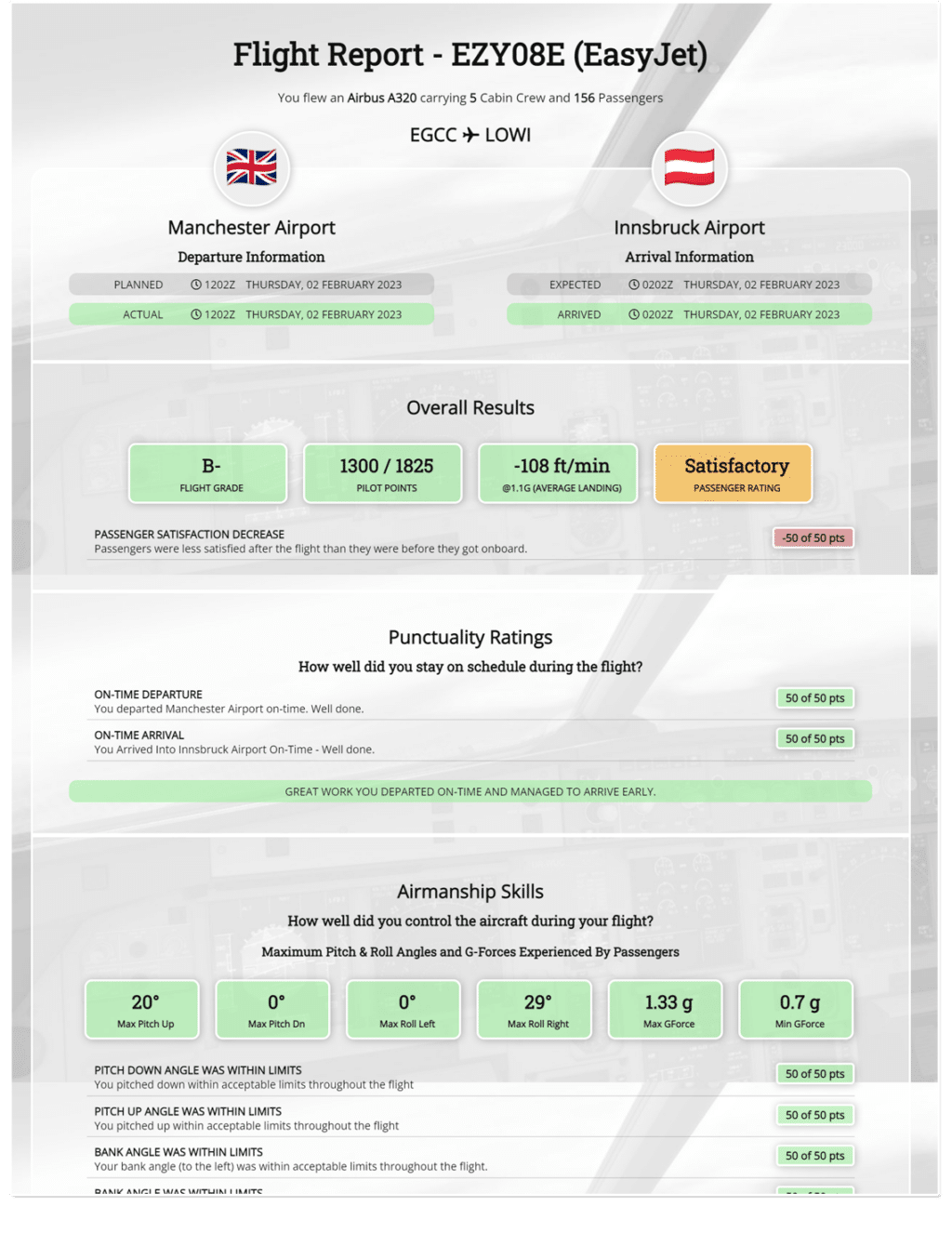 - Bewertungssystem für Piloten und Passagiere, um die Leistung und Zufriedenheit zu bewerten.