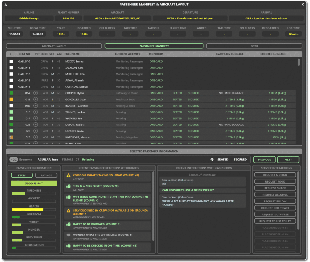 - Simulation individueller Passagiere mit einzigartigen Persönlichkeiten und Bedürfnissen, die das Flugerlebnis beeinflussen.