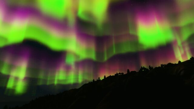SimFX kommt mit Echtzeit-animierten Auroras für die Nord- und Südpole und bietet außerdem saisonal genaue Sternschnuppen, die über den Himmel fliegen.