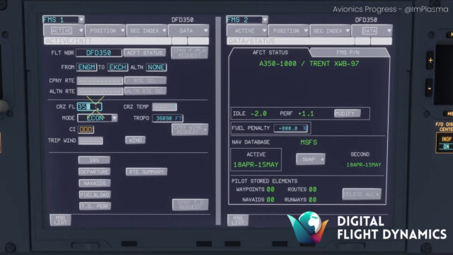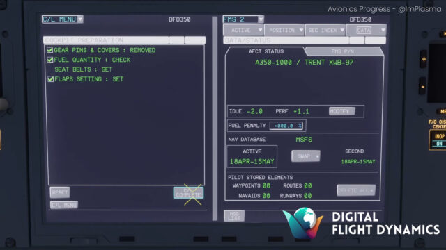 In der vierten Episode ihrer „Discover350“-Dokumentation gewährt die Entwicklergruppe DFD Simulations wieder Einblicke in ihre Arbeit an der Airbus A350 für den MSFS. Der Fokus von Folge 4 liegt auf der Programmierung der Cockpit-Systeme wie EFIS, EICAS, FMC und FMS.