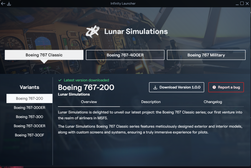 Zunächst wurde bekanntgegeben, welche Variante als erstes released wird. Hierbei handelt es sich um die Militärvariante KC-46. Diese Entscheidung resultiert aus einem Zusammenschluss zwischen Delta und Lunar Simulations. Delta Simulations ist unter anderem bekannt für ihre kostenlose C-17 Umsetzung. Danach wird die 767-300F folgen.
