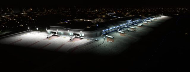 Die Szenerie für den MSFS bildet den aktuellen Zustand des Flughafens nach den jüngsten Erweiterungen ab. Sie umfasst: