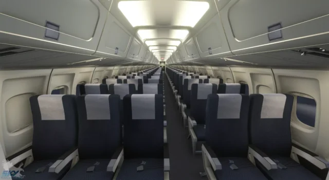 - Detailliertes Außenmodell: Zwei verschiedene Modelle (DC-9-10 und DC-9-30) mit hochauflösenden PBR-Texturen, dynamisch flexiblen Flügeln und animierten Komponenten wie Türen, Treppen und Cockpitfenstern.