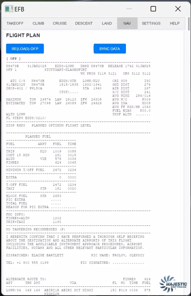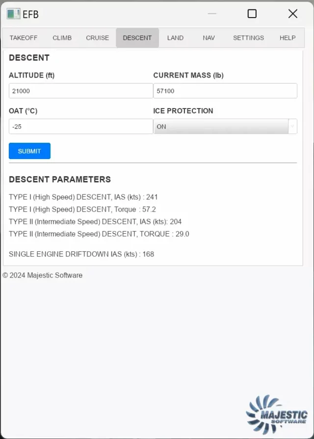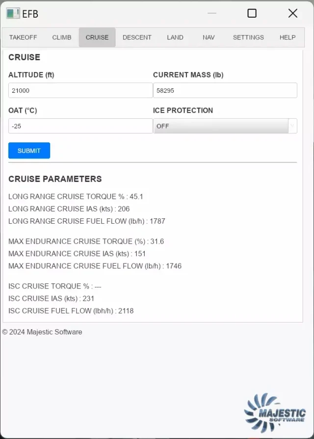 Das EFB Version 1.0 ist ein Add-on für das MJC8 Q400 in Prepar3D. Es ermöglicht die Berechnung von Flugleistungsdaten basierend auf aktuellen oder geplanten Bedingungen. Das EFB kann sowohl im Virtual Cockpit als auch über einen Web-Browser genutzt werden.