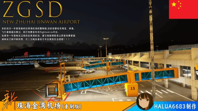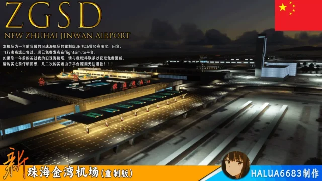 Das Add-on ZGSD New Zhuhai Jinwan Airport von HALUA6683 ist eine detaillierte Nachbildung des Flughafens Zhuhai Jinwan für Microsoft Flight Simulator 2020 und 2024. Es wurde nach realistischen Vorlagen erstellt und bietet zahlreiche Features, die für ein immersives Flugerlebnis sorgen.
