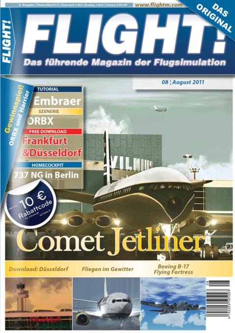 Zum aktuellen August-Heft: auf 84 Seiten finden sich u.a. Berichte über den Just Flight Comet Jetliner, die Szenerien Vilnius und Port Macquarie sowie ein Embraer-Tutorial. Den gesamten Heftinhalt erfährt, wer auf „Weiterlesen“ klickt …