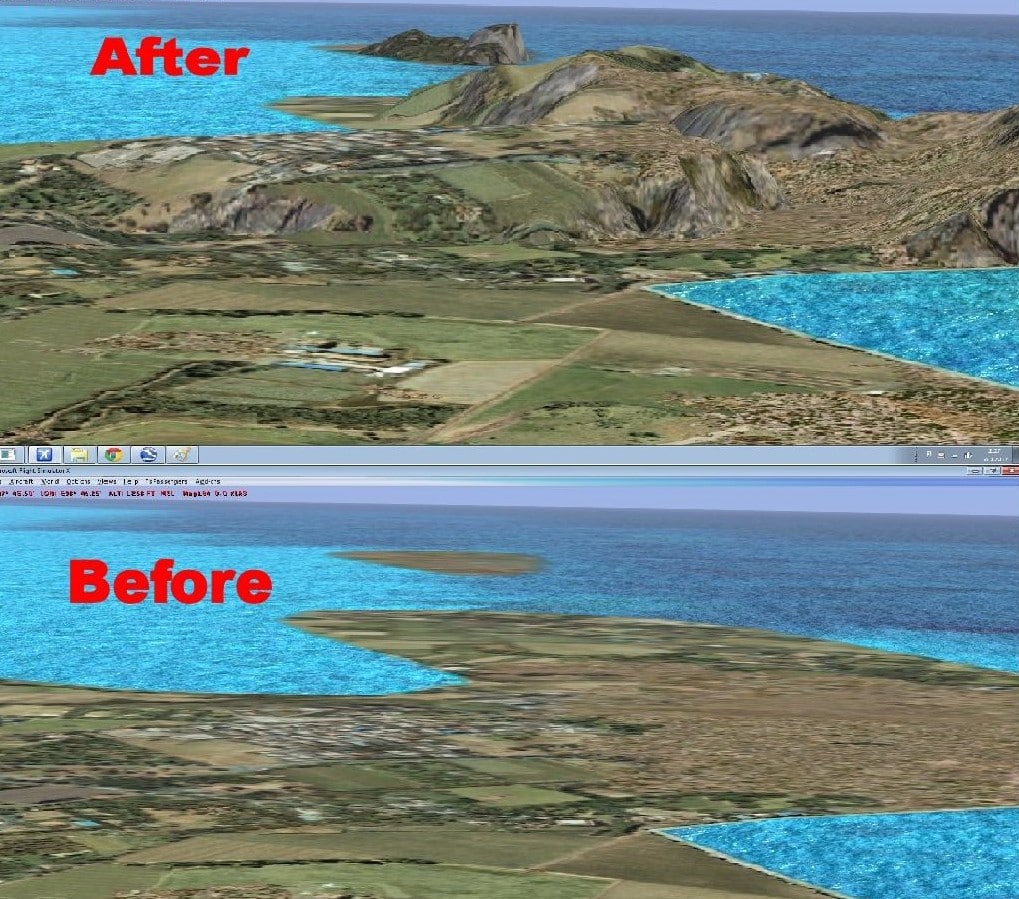 Vorher/Nachher Bilder veranschaulichen deutlich, was sich im FSX ändert, wenn man bessere Meshes/Höhendarstellungen installiert, als sie der Flusi in der Default-Version mitbringt. Dies gilt besonders für Regionen, die im FSX schlicht und einfach vernachlässigt werden. LivingFS hat nun solche Daten für die in der Überschrift genannten Staaten genutzt und steigert damit die Genauigkeit der Auflösung unter Verwendung von ASTER Daten von 306m auf wenigstens 30m. Unlängst sind die Meshes für Sri Lanka im simMarket erschienen, nun gibt es auch die „Berge“ von Thailand und Kambodscha. Vielleicht unternimmt man ja einmal eine Reise ins ferne Asien…