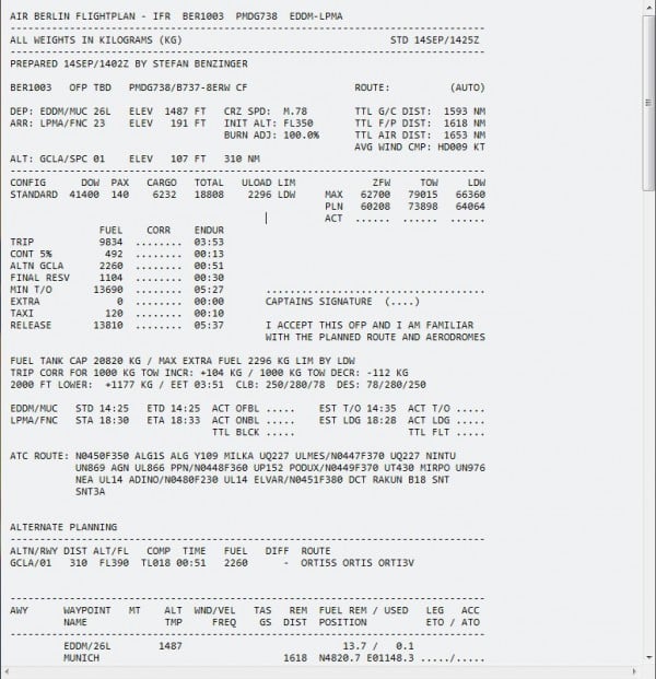 …und schon kommen wir zum OFP (operational flight plan). Diesen exportieren wir flugs…