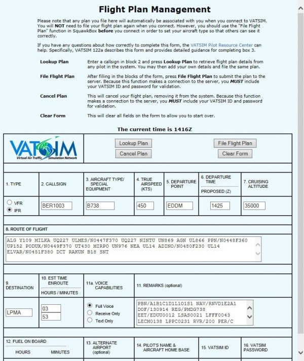 VATSIM-Piloten kriegen auch noch ein prefile für ihre Lotsen