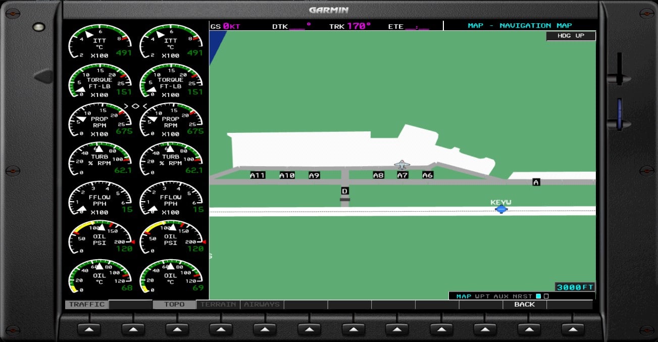 Heraus sticht vor allem eines: die Ankündigung eines „G1000“-Retrofits, das 2009 eine ganze Menge neuester Technologie in die eigentlich schon fast 50 Jahre alte King Air-Baureihe gebracht hat. Versprochen wird ein digitaler 2-Kanal-Autopilot, GPS inklusive WAAS-Fähigkeit, eine Hinderniskarte als ‚moving map‘ sowie das ‚SafeTaxi‘-System, das die AFCAD-files von Standard- und Add-on-Szenerien ausliest und darstellt. Mit diesen Features sind die realen Flieger RVSM-fähig und sogar für den Betrieb mit einem Piloten zugelassen.