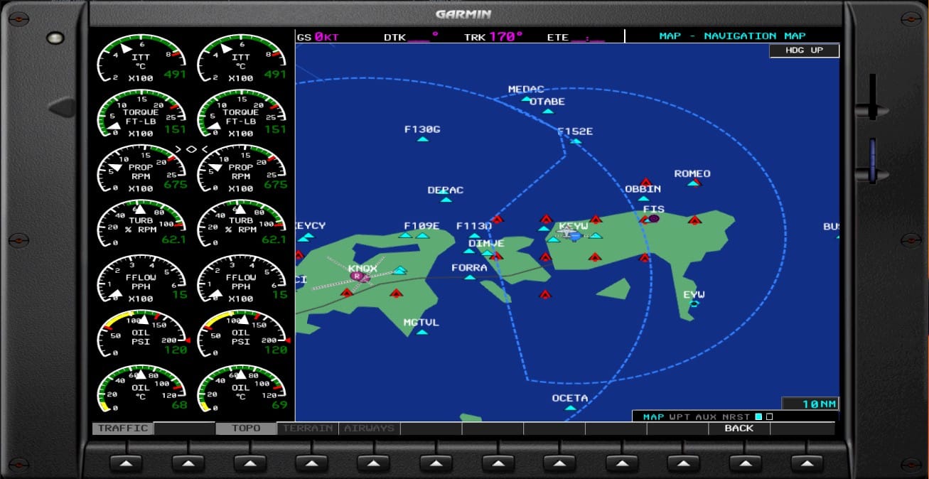 Seit Glascockpits auch in kleineren Maschinen wie der King Air oder sogar GA-Mustern verfügbar sind, gibt es in der realen Luftfahrt durchaus geteilte Meinungen zu den Vor- und Nachteilen dieser Entwicklung. Diese Kontroverse kann man mit dem vorliegenden Produkt schön nachvollziehen! Wer wie ich simulatorisch mit den „holy six“, Karte und Uhr groß geworden ist und schon ein GPS als Luxus empfindet (von EFB oder dem FSC gar nicht zu reden!), der ist von all den Anzeigen schnell erschlagen, verzettelt sich in Klick-Abenteuer und übersieht am Ende (beziehungsweise kurz davor :-[) die wesentlichen Informationen.
