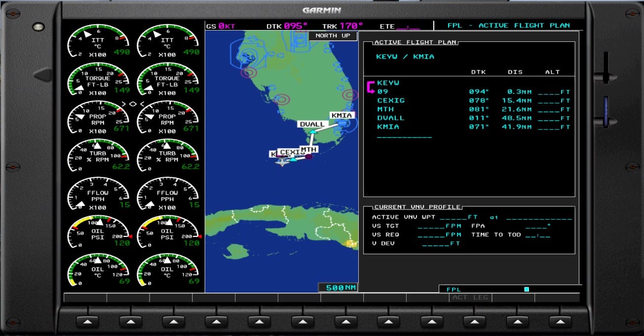Ein paar Beispiele aus einem Flug von Key West (KEYW) nach Miami Intl. (KMIA) zur Verdeutlichung: