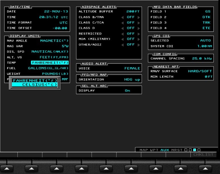 Und Flight1 spart nicht mit weiteren Extras! Mitgeliefert wird zum einen ein Tool, das die Auslagerung der FMC-Bedienelemente (GCU 447 MFD) als Android-App auf ein Tablet oder Smartphone ermöglicht. Das Aussehen der Displays kann ebenso wie die Kabinenausstattung über einen externen Konfigurator bestimmt werden. Das Garmin verfügt ebenfalls über eine separate Seite, bei der Präferenzen festgelegt werden können (z.B. Temperaturen in °C oder °F). Lediglich Beladung und Sprit werden über das FSX-Standardmenü festgelegt.