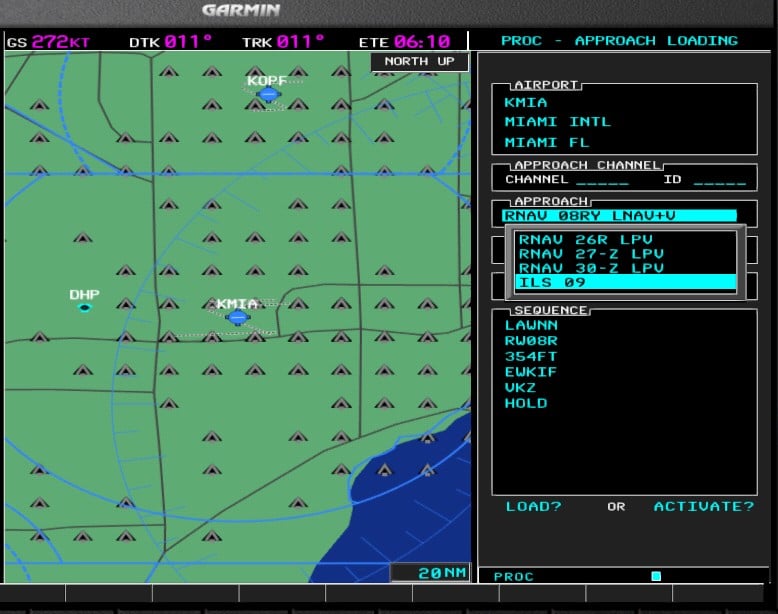 Auswahl des ILS-Anfluges auf die 09 in Miami