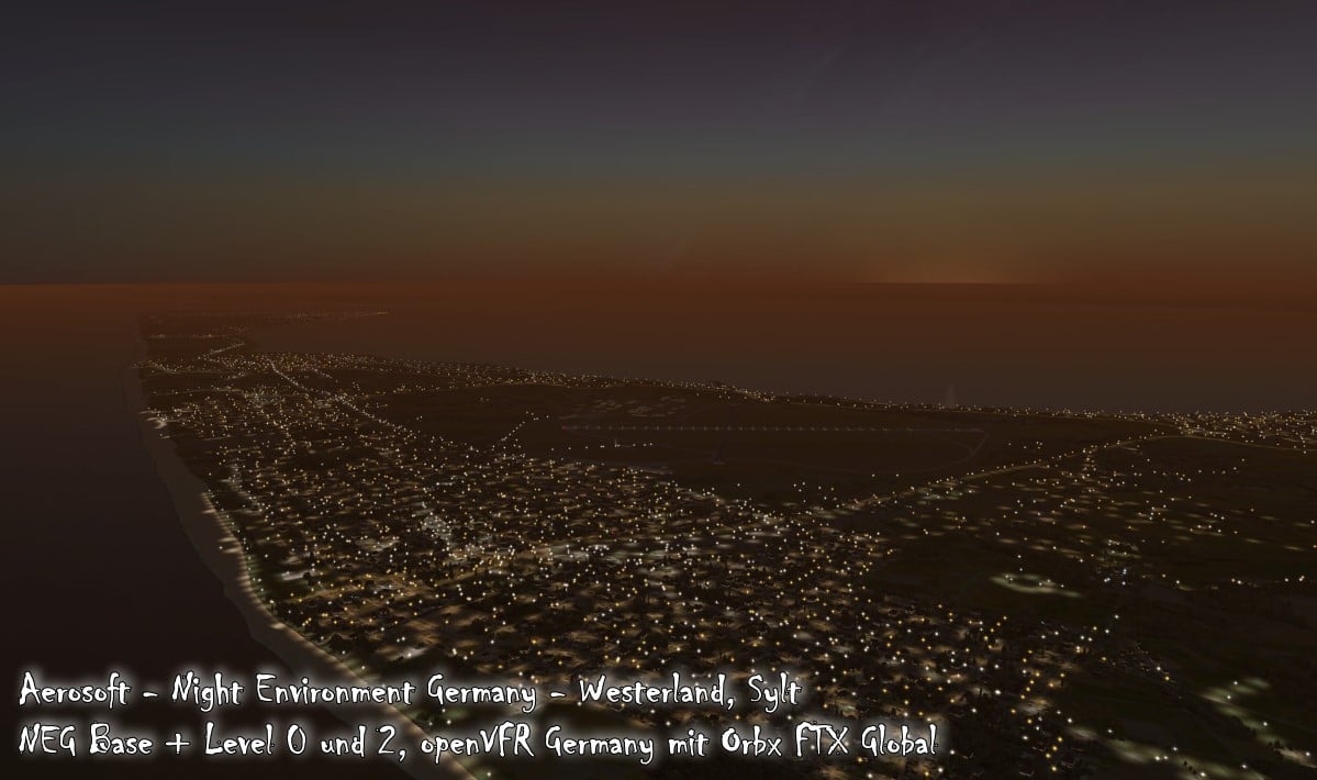 Look at it this way. Without NE-Germany you will probable see no streets whatsoever most of the time. With NE-Germany you might see a bit more then what real. The fine images in this quick review show the difference. What we feel is most important is that there is now ’structure‘ at night and no longer the murky blackness. You get the feeling of a living world beneath you. For a low cost add-on like this one (it’s 0.00013 cent per light, lol) we feel it really adds something that FSX was missing.