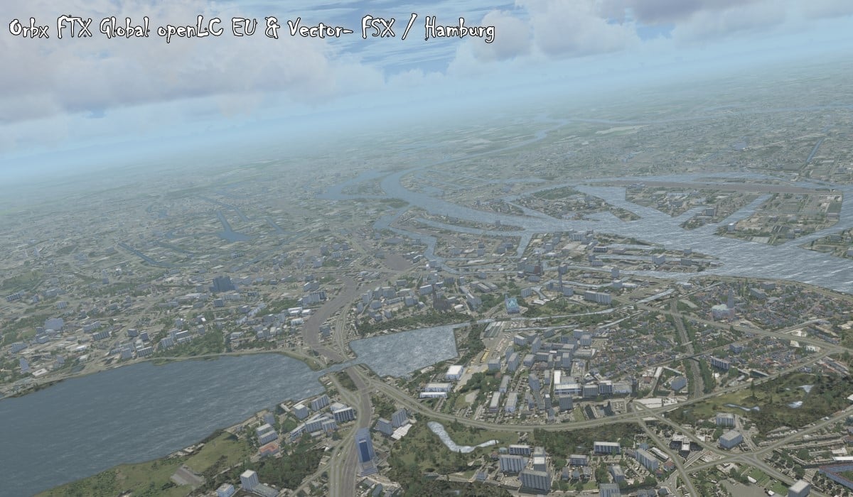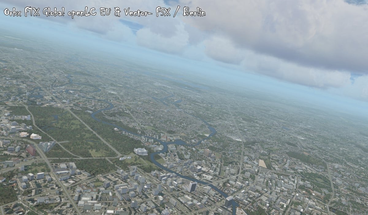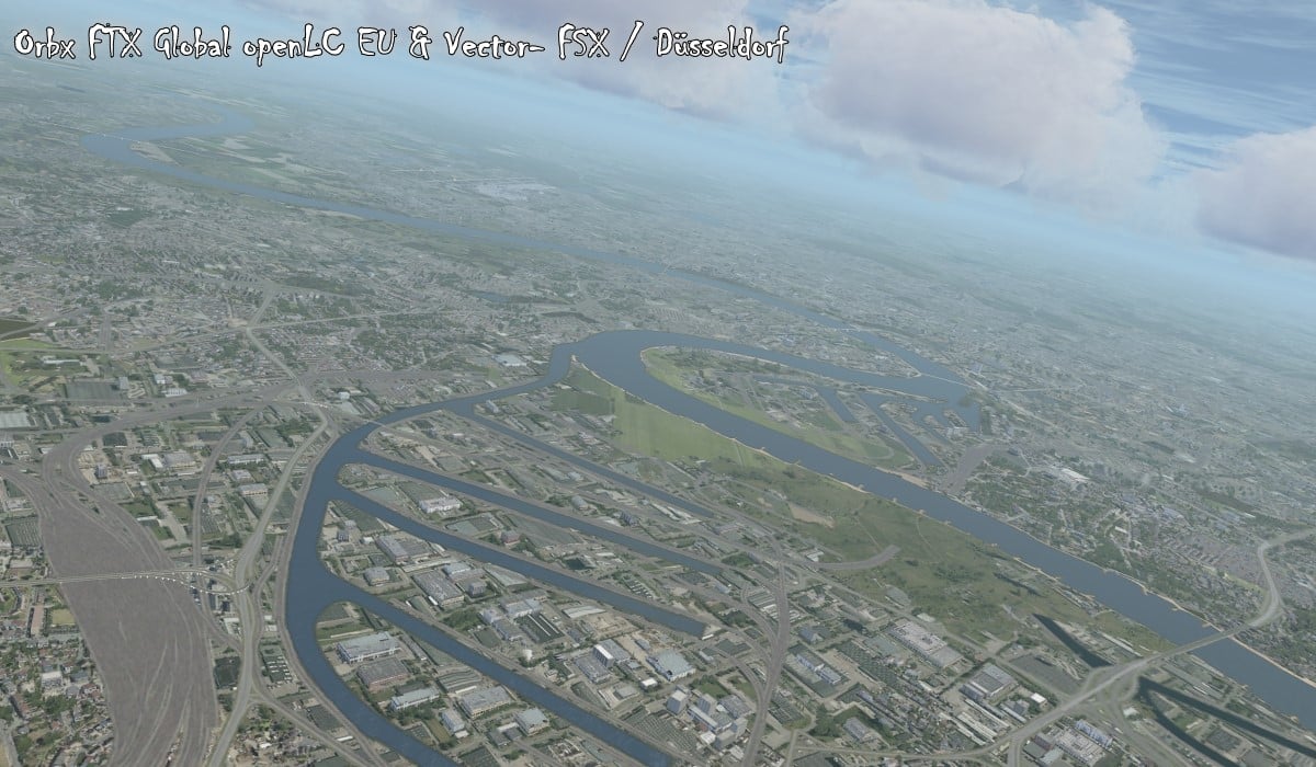 Schlussendlich gibt es ja auch noch ein paar neue Texturen, die die ohnehin guten Texturen von Orbx FTX Global ergänzen. Hier am Beispiel von Magdeburg mit der Elbe im Hintergrund: