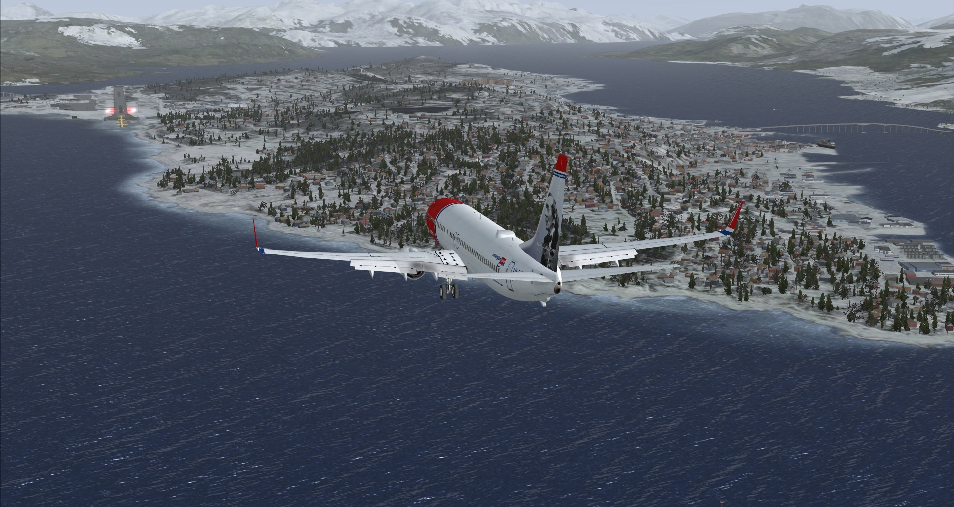 Auch Tromsø ist toll umgesetzt. Die Szenerie paßt sich vielleicht nicht so gut in ein FSX-Standard-Setting ein, aber mit FSGlobal Base und den hervorragenden norwegischen Freeware-Szenerien (NSX 3, Norway Mesh, Norwegian GA) ergibt sich ein stimmiges Gesamtbild.