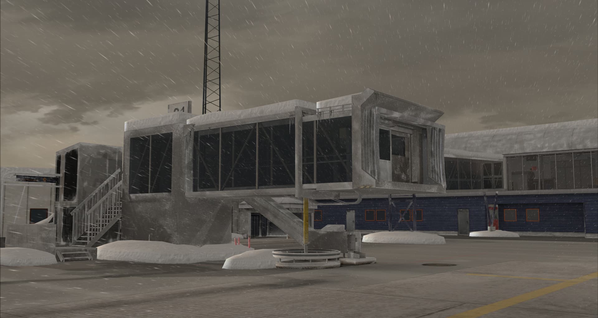 Wie schon bei Bergen X, muss auch bei dieser Szenerie über das mitgelieferte Config-Tool die entsprechend passende Jahreszeit gewählt werden. In der Winter-Einstellung wurde dem Airport eine zusätzliche Schneeschicht spendiert, die sich auf den Dächern und den Jetways niedergelassen hat. Das ist recht ansprechend gelungen – an den Jetways hängen sogar vereinzelt Eiszapfen. Leider wirkt der sauber vom Schnee befreite Apron dabei sehr unwirklich. Hier hätten ein paar zusätzliche Schneehaufen ein stimmigeres Bild abgegeben.