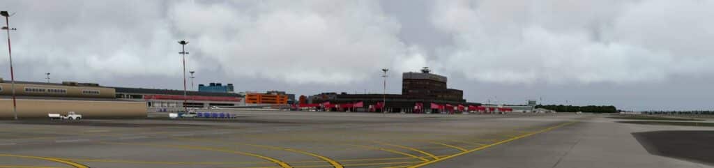 Auf dem Flughafen selbst stehen jede Menge Fahrzeuge, ja sogar Techniker herum. Was jedoch fehlt sind Flugzeuge. Zwar kann man statische Flugzeuge einschalten, aber das sind ungefähr 5 Flugzeuge die noch nicht einmal an Gates stehen. Damit wirkt der Flughafen selbst ausgesprochen leer um nicht zusagen, außer Betrieb.