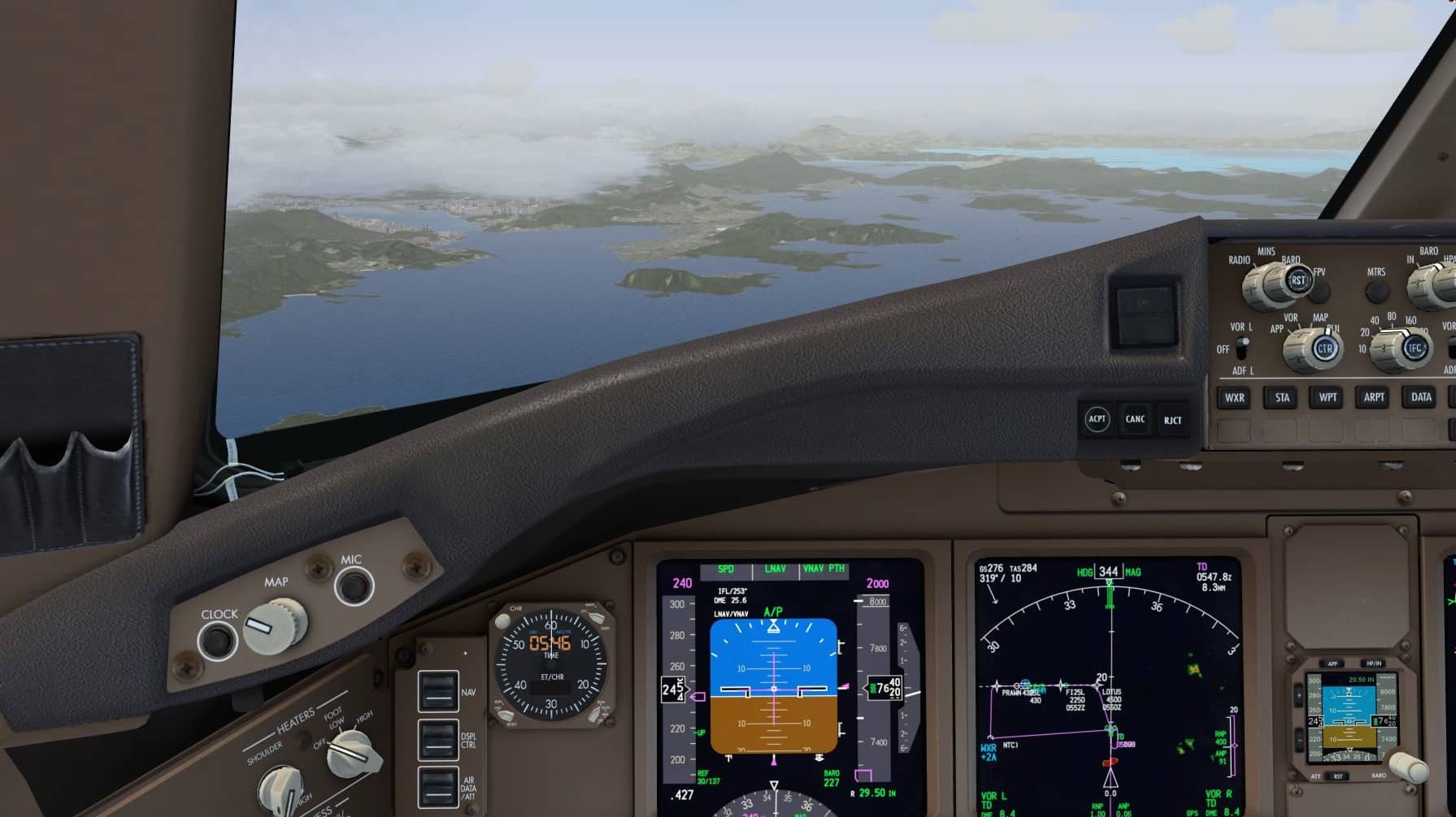 Die Performance ist für die gebotene Menge an Details ausgezeichnet (besonders im Endanflug kein Absinken der Framerate unter die gelockten 20 FPS). Bei einem Flug zwischen Manila und VHHH mit AI-Traffic, Wetter und PMDG 777, FlyTampa’s Kai Tak und FTX Global hatte ich kein Problem mit der Speichernutzung.