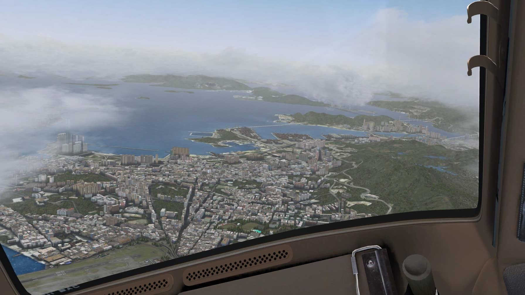 Für die FSX-Familie gab es bisher lediglich die schon sehr in die Jahre gekommene Version von Imagine Sim. Taxi2Gate hat also eine schon lange fällige Modernisierung in Angriff genommen. Quasi innerstädtische Konkurrenz dazu ist die immer noch großartige Szenerie für Kai Tak von FlyTampa, die besonders natürlich von der Modellierung Downtowns lebt. Das ist aber auch für den „Neuen“ gut: bei Westwind führen weite Teile des Anflugs über Downtown. Ich habe daher für diesen ersten Eindruck Kai Tak aktiviert gelassen und benutze außerdem FTX Global und Vector.