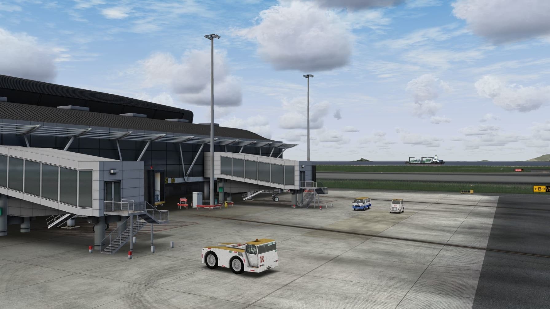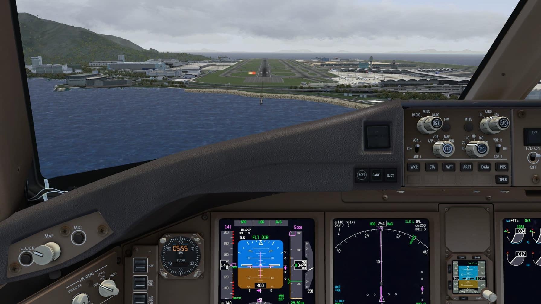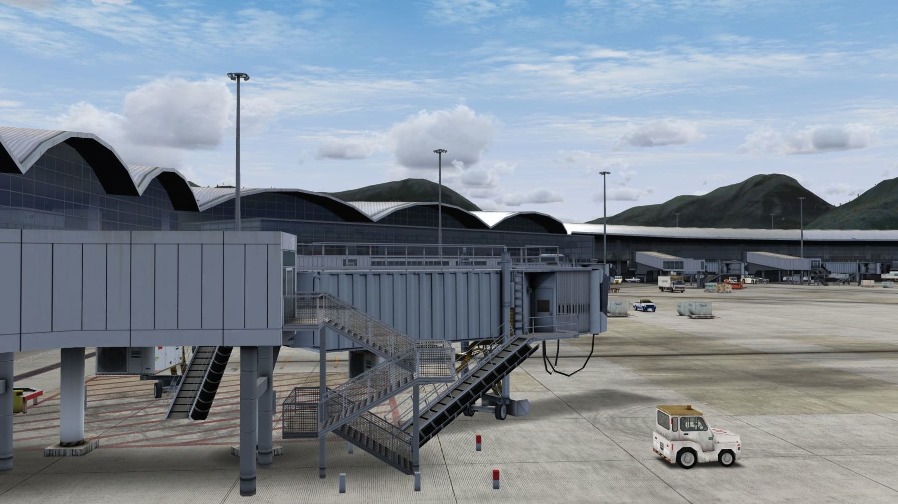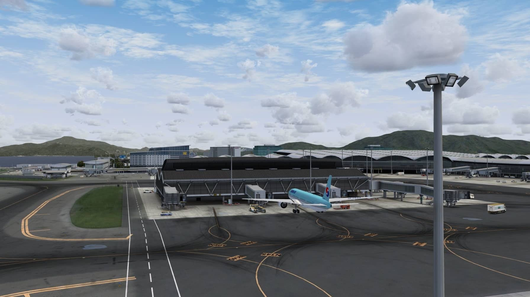 Hong Kong International Airport VHHH ist ein faszinierender Großflughafen, der auch genau so im Simulator wirkt. Es macht Spaß, hier herumzutollen und anzufliegen. Die Darstellung ist generell sehr detailliert, aber leider manchmal etwas lieblos umgesetzt. Das merkt man zum Beispiel an kleinen Fehlern in der Airside, an der nicht umgesetzten Einparkhilfe und so weiter. Das ändert zwar nichts daran, dass es Spaß macht, hierher zu kommen, aber es nervt halt dennoch.
