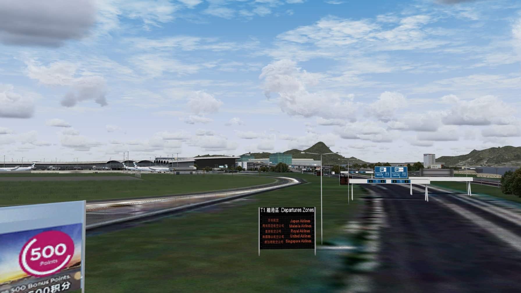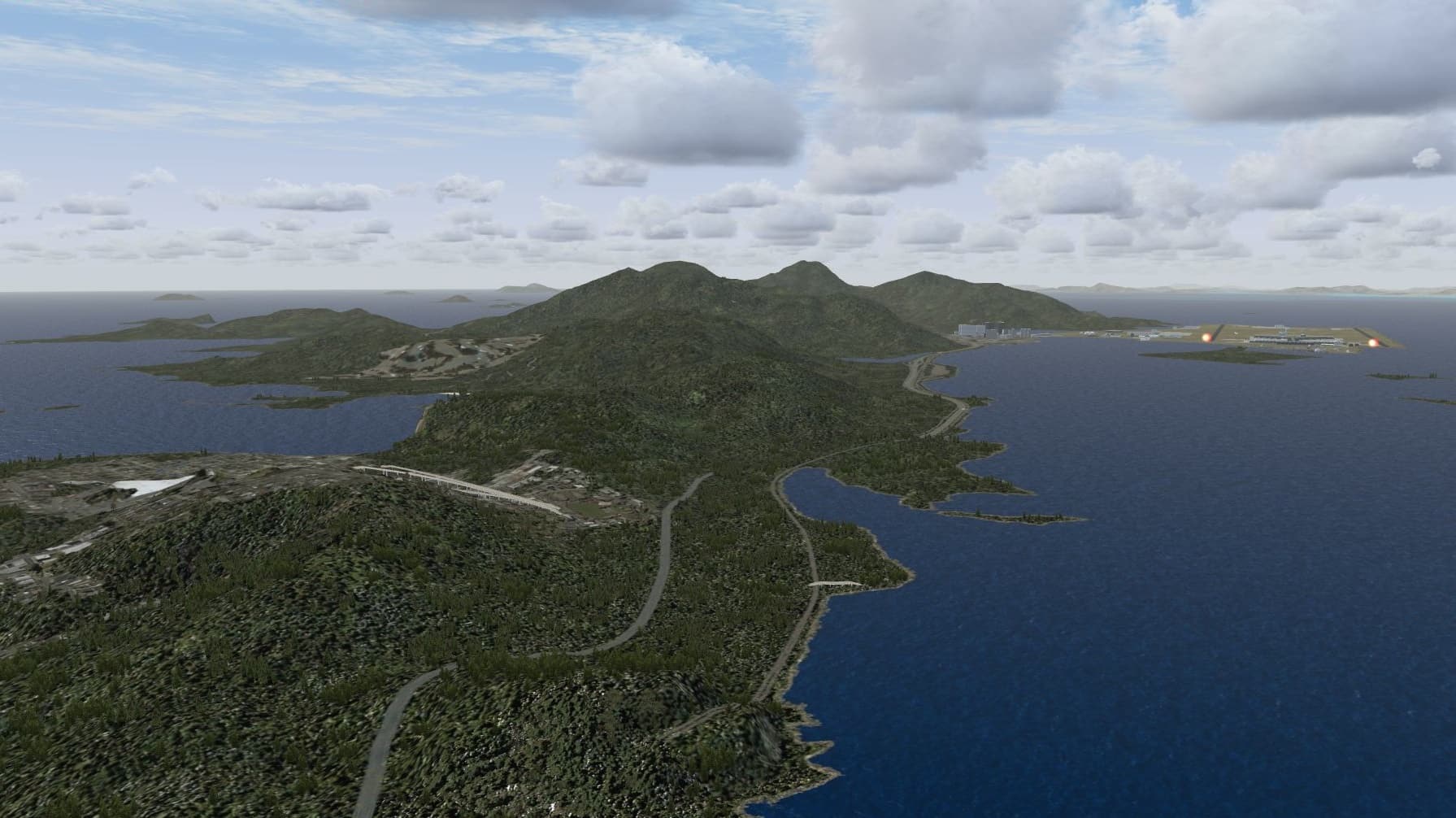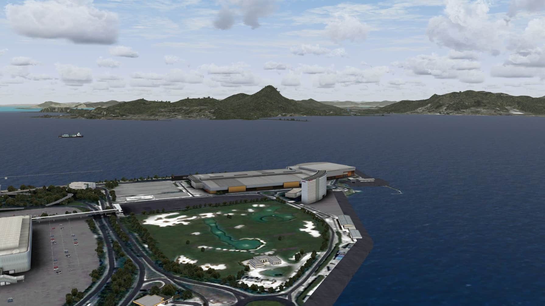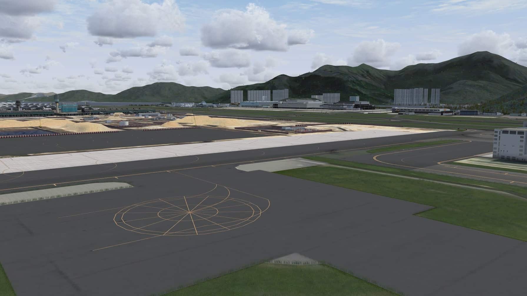 Die Instel Chek Lap Kok war ja im Default-FSX doch sehr spärlich dargestellt. Auch FTX Global Vector und natürlich FlyTampa’s Kai Tak ändern daran nicht wirklich viel. Taxi2Gate liefert aber zumindest eine beeindruckende Hochhauskulisse im Übergangsbereich zwischen Chek Lap Kok und Flughafeninsel mit. Die Texturen der gesamten Insel sind angepasst, was sich aber leider auch auf die Dichte der Bäume auswirkt – die sinkt nämlich im Vergleich zu FTX Global.