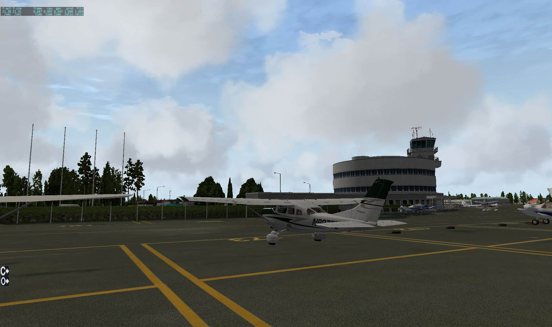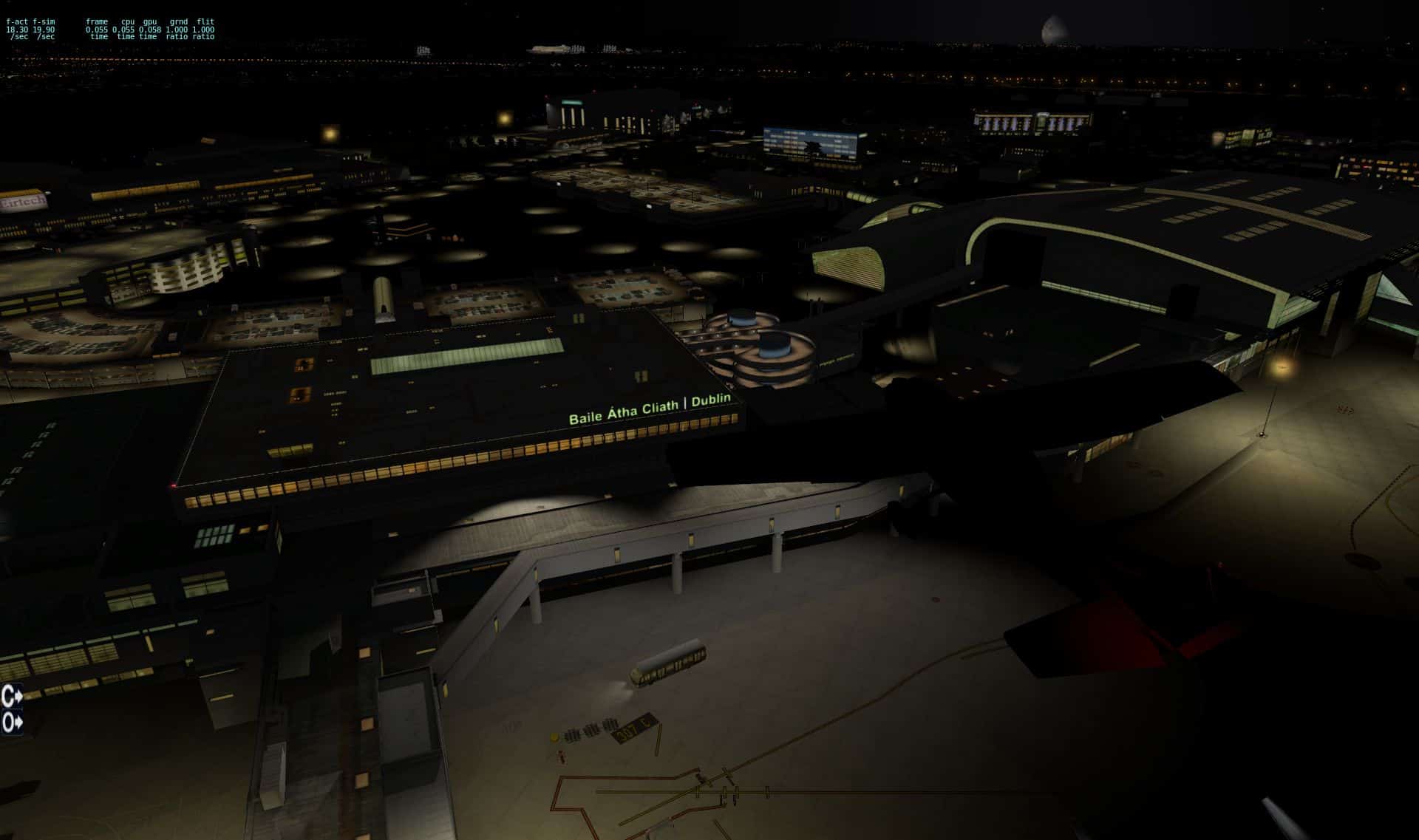 Während die FSX-Engine unter einer großen Anzahl von beleuchteten Objekten in die Knie geht, wird X-Plane in der Nacht schneller, weil nicht so sehr die Anzahl der Leuchtquellen sich auswirkt, als vielmehr der Schattenwurf. Nachts gibt es weniger Schatten, daher wird die Darstellung schneller