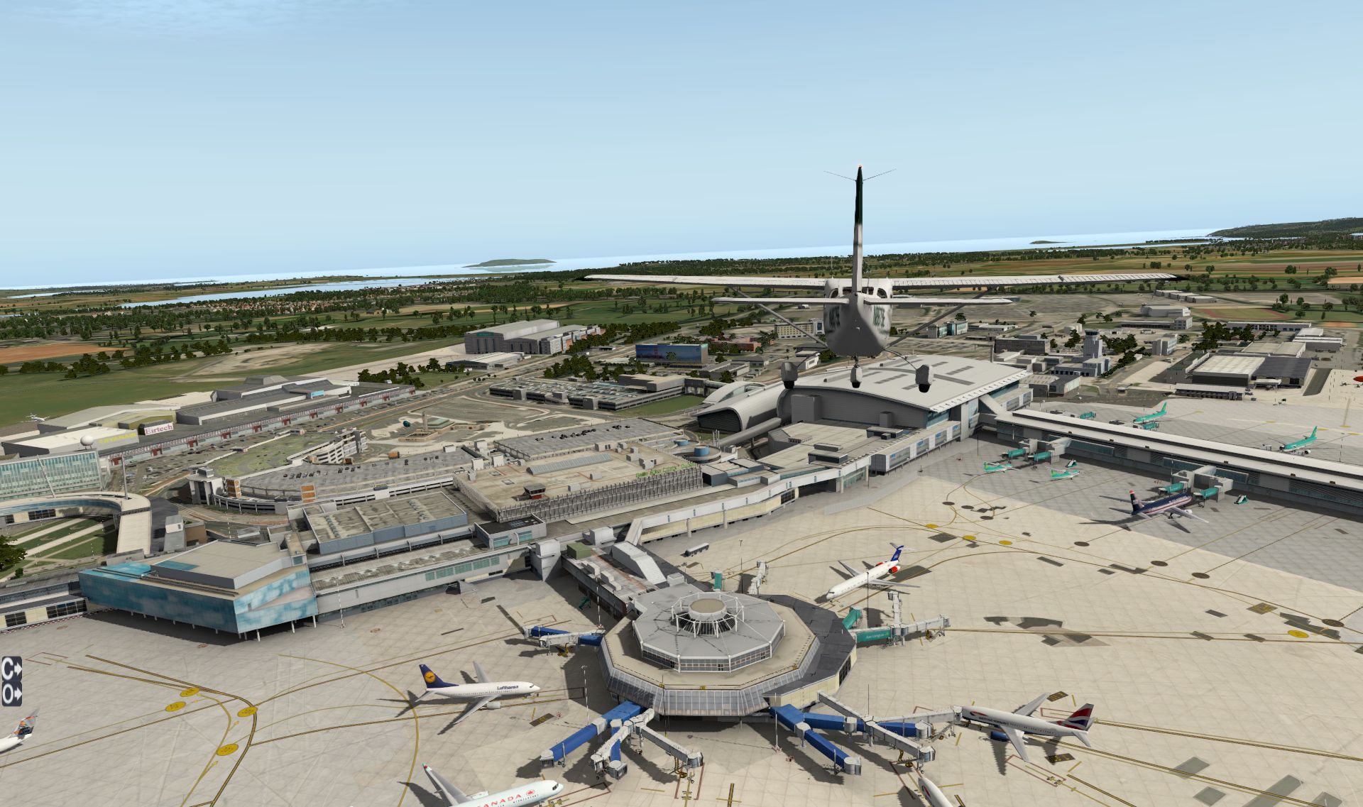 Auch die Flughäfen zeigen, dass man immer noch jede Menge Spezialwissen für X-Plane benötigt um wirklich mithalten zu können. Namen wie Beti-X, TruScenery und mit einigen Abstand die Tom Curtis Szeneries führen zusammen den Markt an. Icarus im Vertrieb von Aerosoft kann hier vielleicht mitmischen aber erst mit Abstand folgen dann FSX Entwickler. Aerosoft kann hier zwar einige schöne aber auch tote Flughäfen anbieten. Freeware Flughäfen wie Santorin, Madeira oder KPVG Hampton Roads haben kommerzielle Konkurrenz nicht zu fürchten, eher umgekehrt, wenn sie z.B. Features nutzen die kommerzielle Anbieter als unmöglich bezeichnet haben, oder aus rechtlichen Gründen nicht einsetzen wollen.