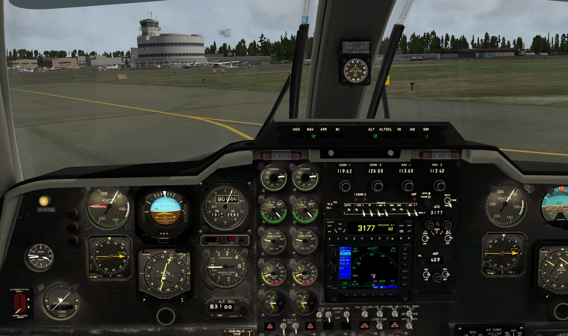 Doch dann gibt es noch solche Dinge wie der Wechsel der Funk- und Navigationsfrequenzen, die in diesen Fliegerso zäh ablaufen ,wie in keinem anderen, auch nur halbwegs aktuellen, Flieger. Und wenn man sich die Performance der Saab 340 ansieht, dann sieht es trotz mehrerer Performance Updates immer noch düster aus. Wo andere Flieger mit 30-35 fps durch die Gegend fliegen, kämpft die Saab teilweise mit 20 fps. Und dabei ist die 340A ein reiner VOR Flieger. Um auch nur halbwegs den europäischen Regularien entsprechen zu können, hat man in letzter Sekunde ein Mini-GPS aus dem Hut gezaubert.
