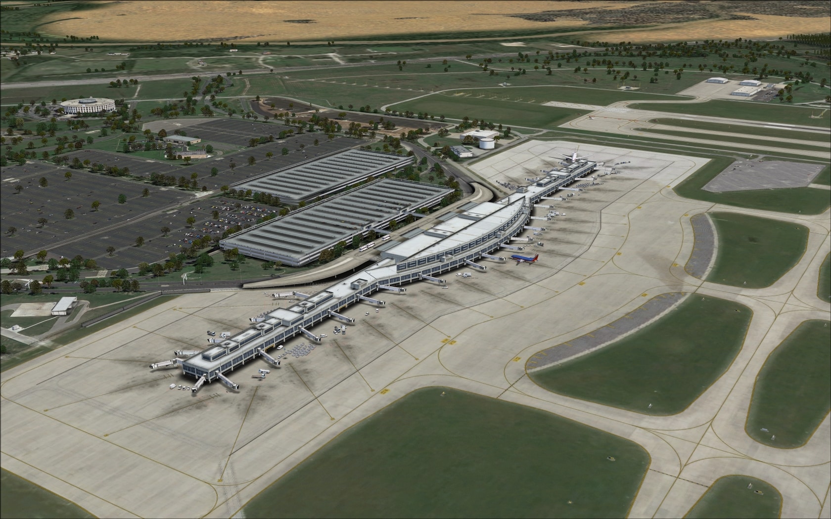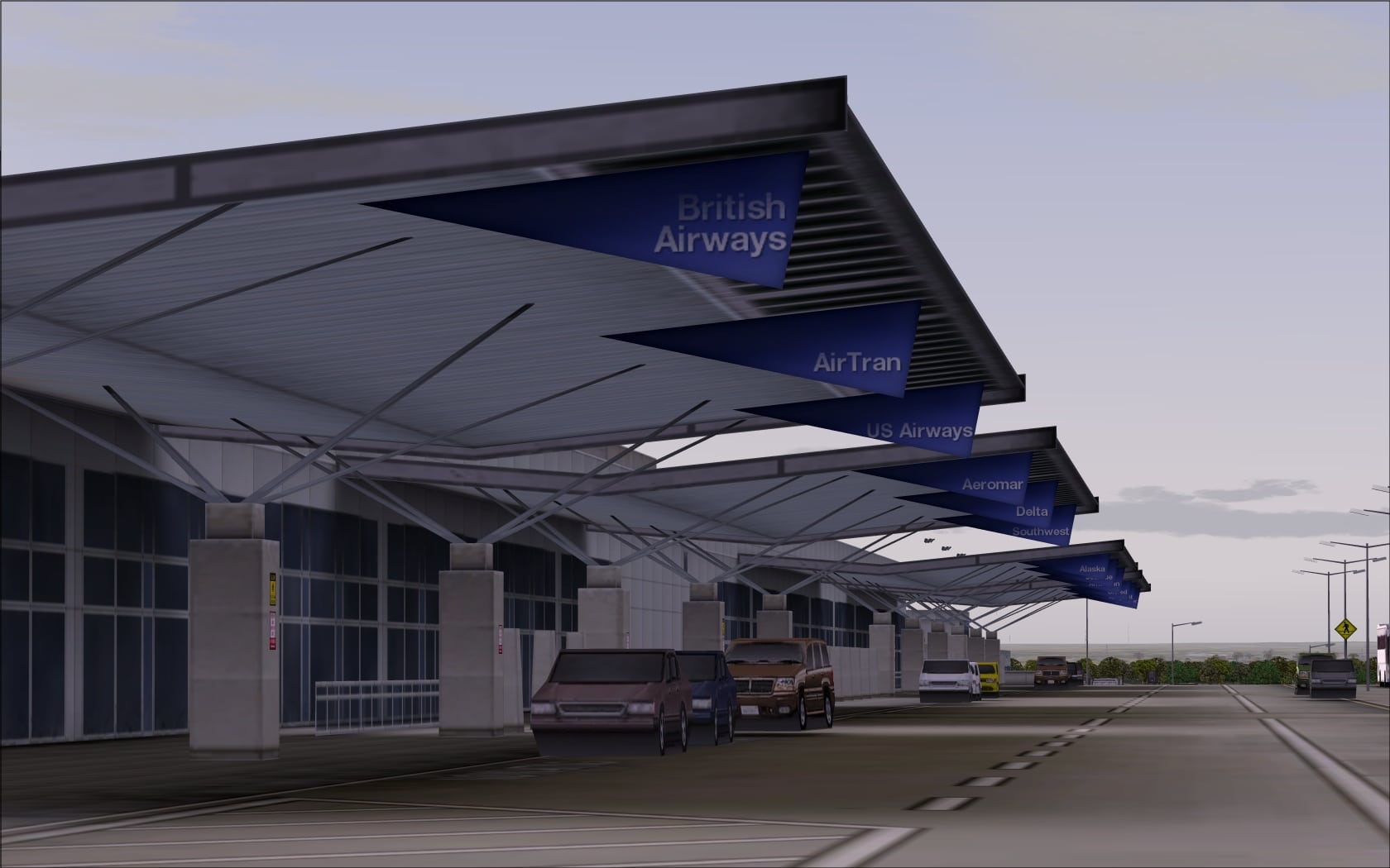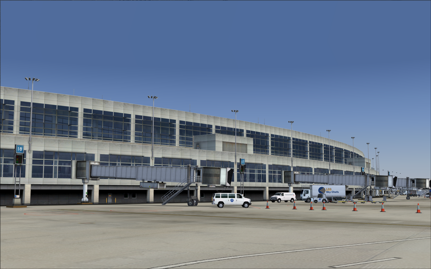Am Barbara Johnson Terminal hat sich Imagine Simulations mächtig ins Zeug gelegt. Die Fassade des 61.000m²-Gebäudes ist scharf und sauber gestaltet. Es wurde bereits im neuesten Ausbaustadium abgebildet. Durch große Glasfronten kann man aus dem Cockpit einen Blick in die Abflughalle werfen. Dort wurde schön und detailliert modelliert. Sogar die Anzeigetafeln sind scharf dargestellt, sodass man selbst die Logos der (leider alten) United und American mit bloßem Auge erkennen kann.