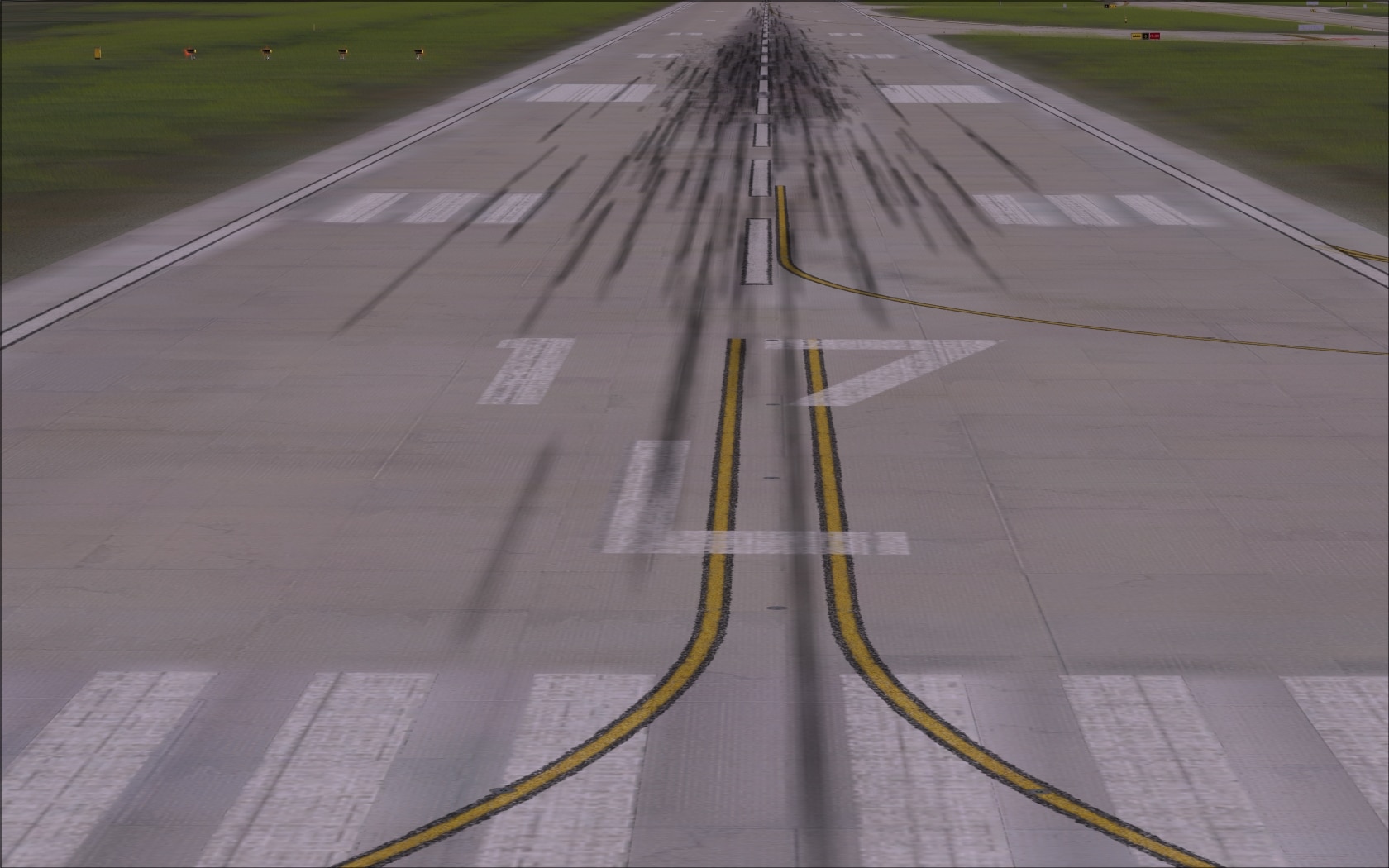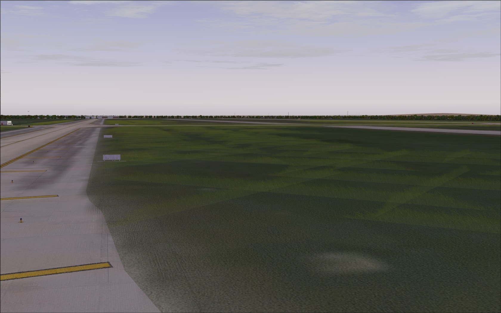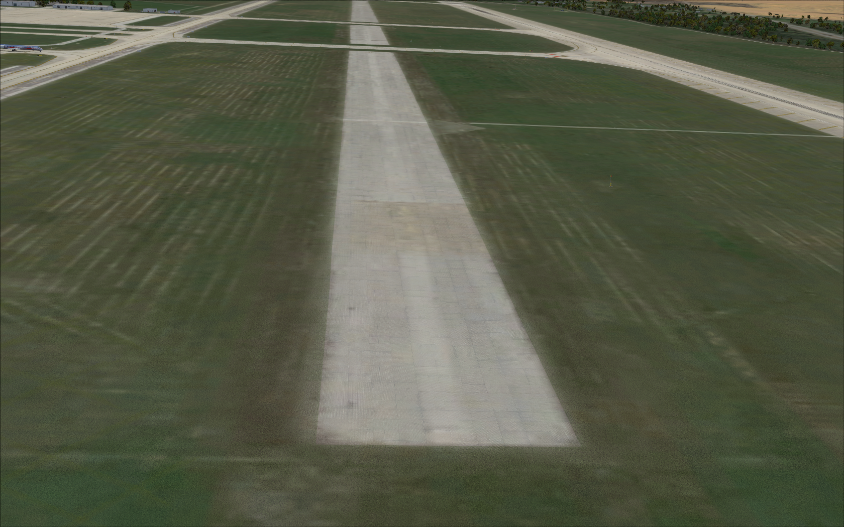 Anders als am Terminal wurde bei den Bodentexturen leider an Qualität gespart. Es fehlt ganz einfach die Liebe zum Detail. Ein gutes Beispiel dafür sind die Überreste der ehemaligen Parallelbahn der Airforce Base Bergstrom. Eigentlich ist diese mit großen X´en gekennzeichnet und verfügt noch über Fragmente alter Abrollwege. Imagine Simulations hat an dieser Stelle aber leider nur einen langen grauen Streifen realisiert und auf weitere Details verzichtet. Auch das GA-Vorfeld entlang der Bahn 17L/35R präsentiert sich eher wie aus dem Default Simulator. Hier gibt es weder Verschmutzungen, noch Abnutzungen oder verschiedene Bodenbeläge (wie es in der Realität der Fall ist).