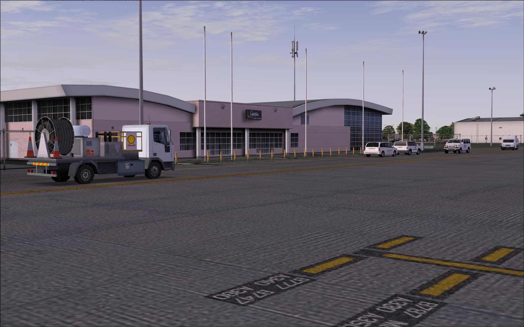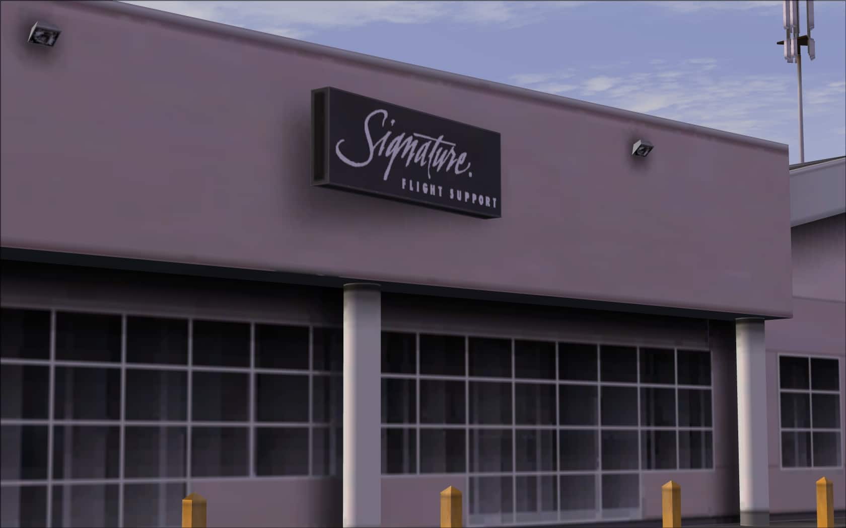 Ähnlich wie das Terminal punkten auch die meisten anderen Flughafengebäude mit scharfen und detaillierten Texturen. Neben bereits erwähnten Hallen im Frachtberreich, sind auch die Gebäude auf dem ehemaligen Air Force-Gelände gut umgesetzt. Außerdem sind Anflugbefeuerung und Taxisigns detailgetreu wiedergegeben. Zwar wirken die Hangars im GA-Bereich wie aus dem Baukasten und gleichen einander bis auf wenige Details, doch ist das Gebäude der „Signature Flight Support“ an dieser Stelle wieder sehr liebevoll abgebildet.