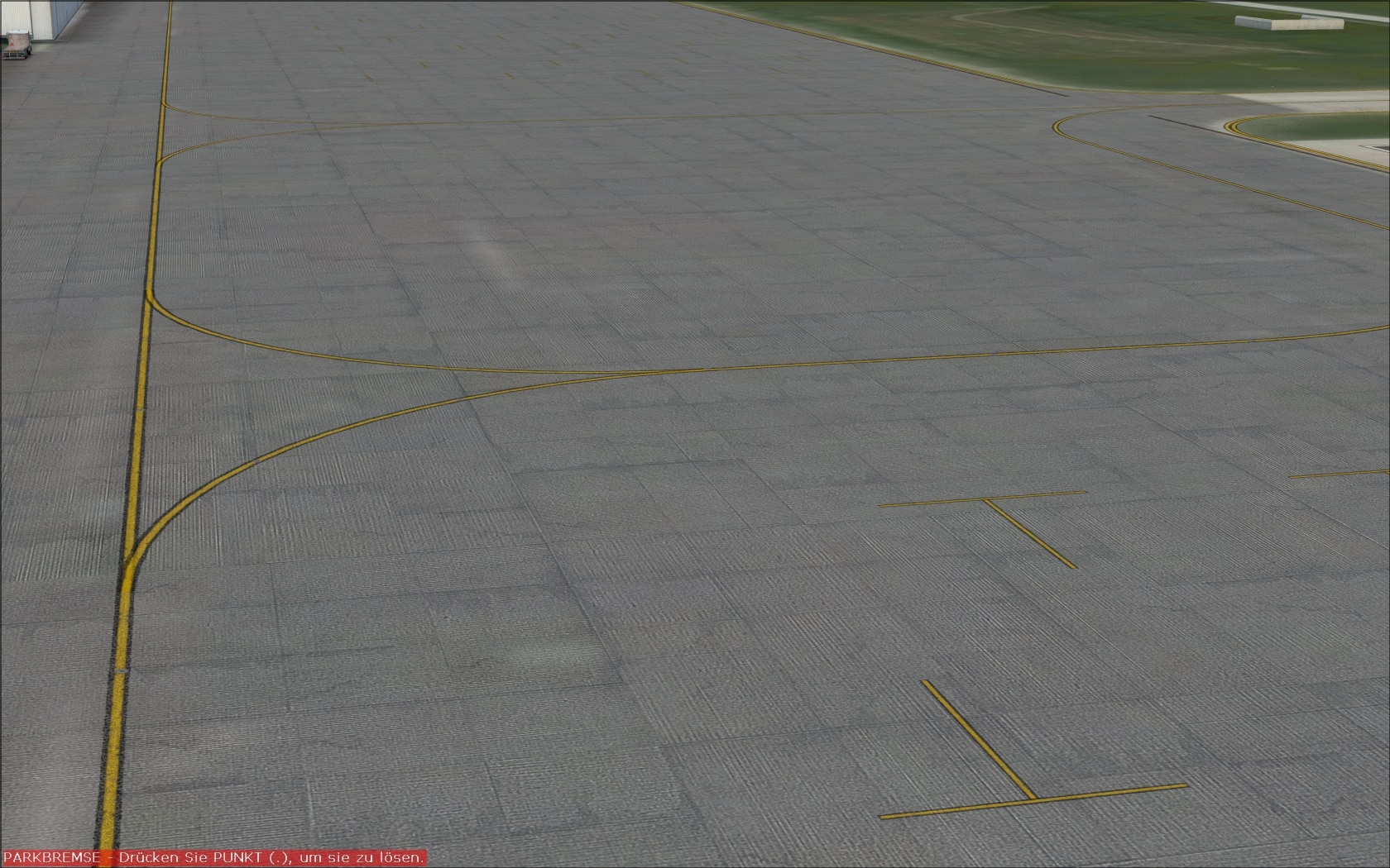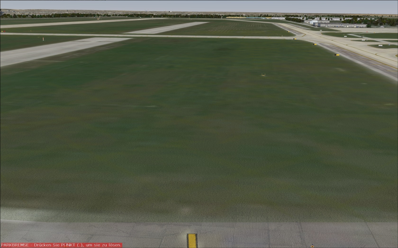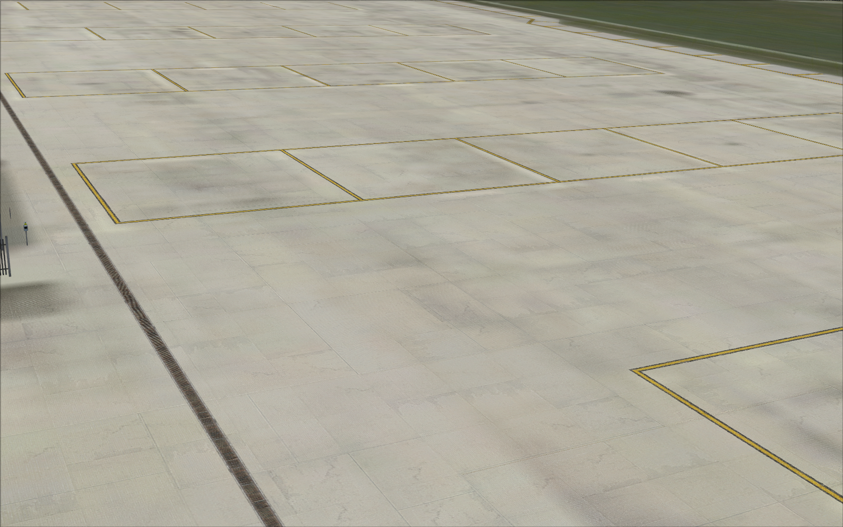 Gleiches trifft auf den Bereich der National Guard im Süd-Westen des Flughafens zu. Zwar sind die Rasenflächen mit 3D-Gras ausgestattet, doch auch hier kann Imagine Sim nicht überzeugen. Das frische Grün wirkt größtenteils leblos und statisch. An einigen Stellen sind Übergänge zwischen verschiedenen Texturen unsauber und verschwommen. Das Terminalvorfeld ist mit Verschmutzungen und Gebrauchsspuren wiederrum gut dargestellt. Hier überzeugen die scharfen Markierungen der Stop-Points für verschiedene Flugzeugtypen. Auch die Taxilines sind präzise und sauber gezeichnet. Alle Kreuzungen sind rund und kantenlos dargestellt. An vielen Stellen fehlt aber auch dort der Sinn für Details, zum Beispiel Reifenspuren auf den Taxiways.