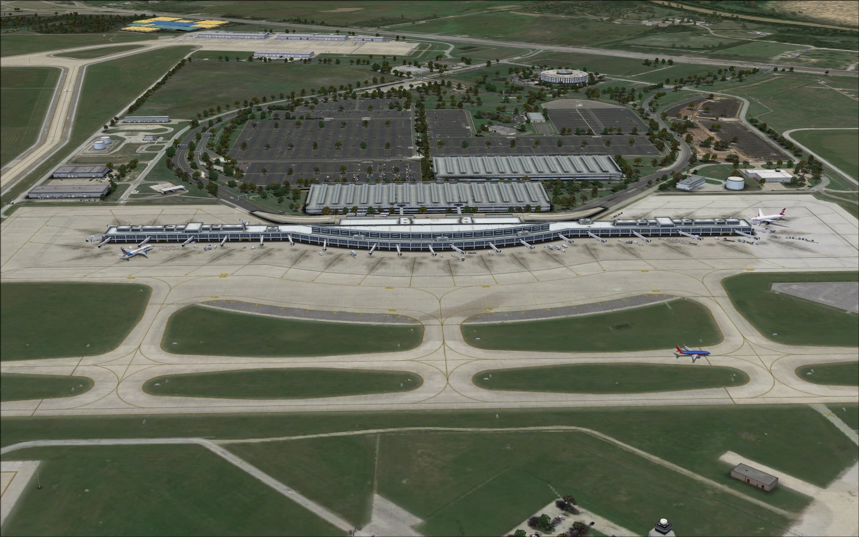 KAUS verfügt über eine sehr sauber umgesetzte AFCAD-File. Die Fluggesellschaften stehen geordnet am Gate, es gibt keine Fracht- oder GA-Maschinen die sich am Terminal verirrt haben. Einzige Wehmutstropfen ist, dass der British Airways Dreamliner stehts mit der Nase im DGS steht, da es am Terminal keine modellierte Heavy-Parkposition gibt.
