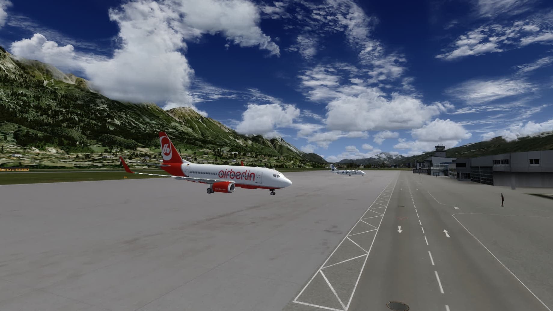 Die Modelle selbst fallen etwas ab gegenüber den insgesamt sehr guten Modellen von WOAI. Bei einigen Flugzeugen fällt es mir schwer, den Typ zu erkennen. Bei WOAI ist oft neben der Registrierung noch die Typbezeichnung zu erkennen, das ist bei MyTraffic nicht so. Was ist zum Beispiel die British Airways-Maschine für ein Typ? Schwer zu sagen.