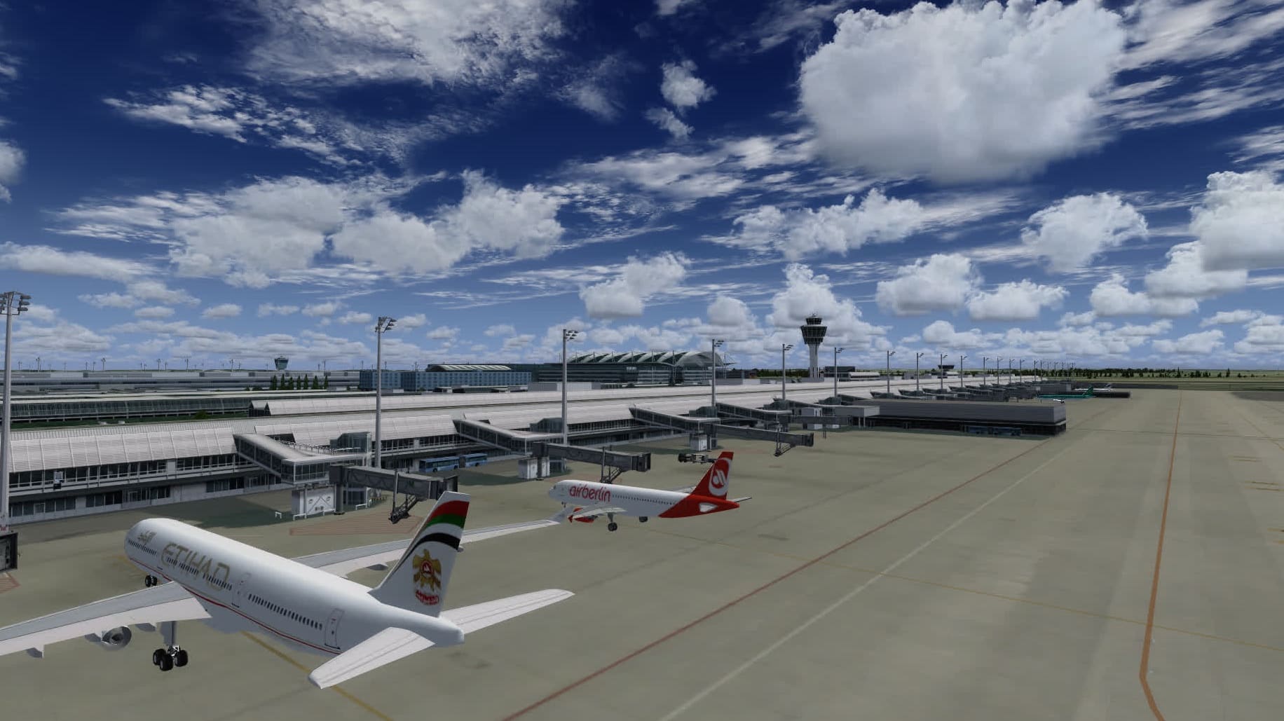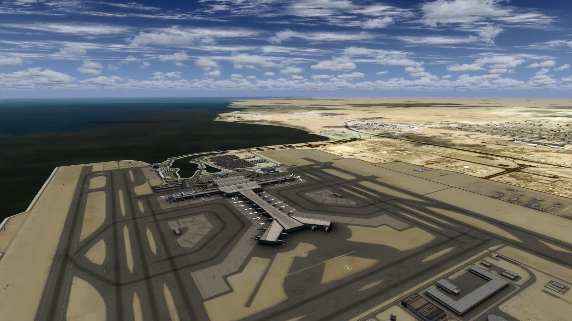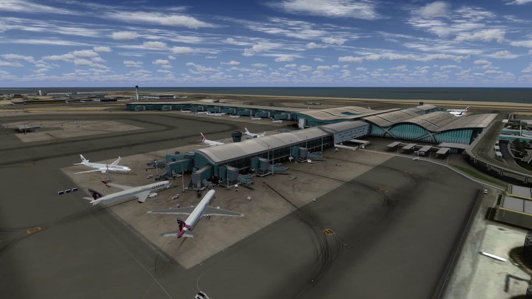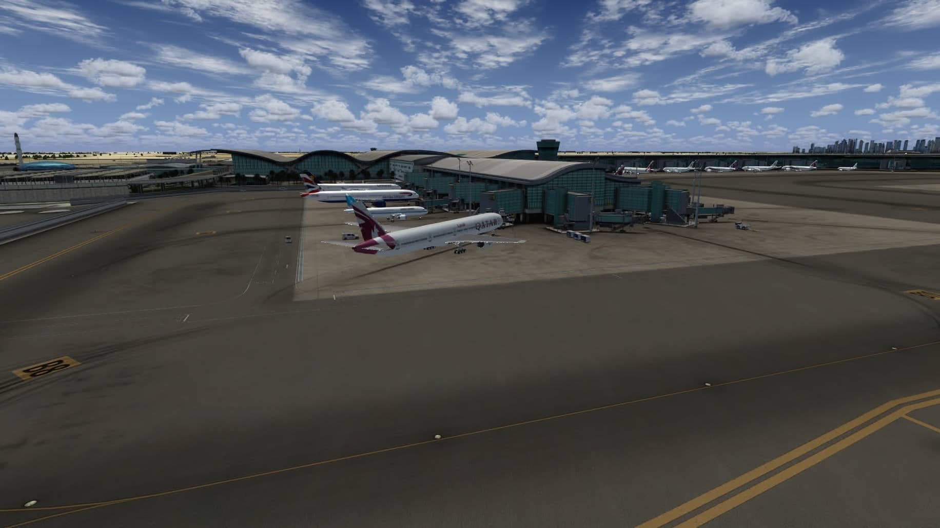 Diese Frage wurde auch von euch gestellt: ja, es gibt jetzt Traffic in New Doha. Da hier die Jetways vom FSX animiert werden, docken sie auch an den Flugzeugen an. Das sieht sehr gut aus und generell wertet Traffic den Flughafen doch sehr auf. Angeblich kann man hier auch den A350 bewundern, ich habe ihn jedoch nicht entdeckt.