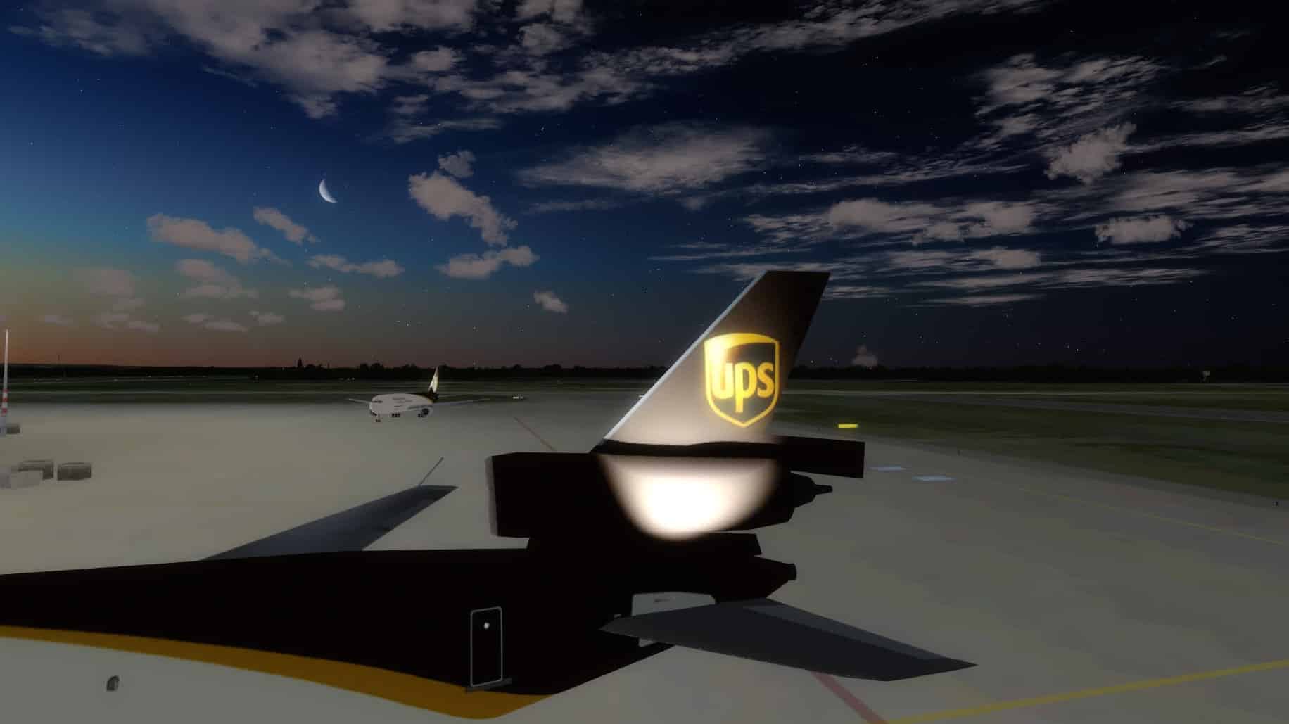 In Köln stimmt soweit auch alles, aber mir fehlen die Frachtmaschinen. Morgens gegen 7 rollt man hier an einer beeindruckenden Zahl MD-11er vorbei, und das fehlt bei MyTraffic (bis auf eine Maschine auf der Rückseite der Frachtgebäude) – zumindest bei den AI-Traffic-Anzahlen, die ich ausprobiert habe. 20% bis 35% wird auch in der umfangreichen, aber unübersichtlichen Anleitung als Richtwert für ein realistisches Flugzeugaufkommen genannt.