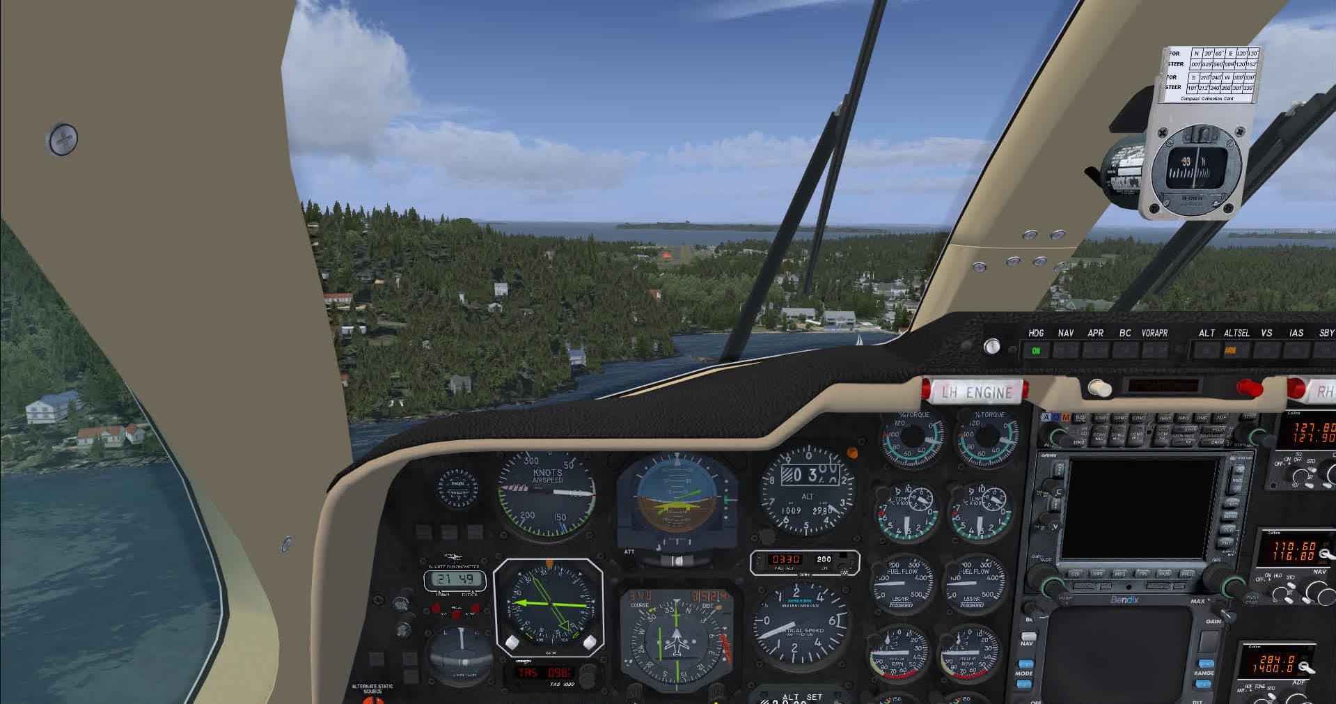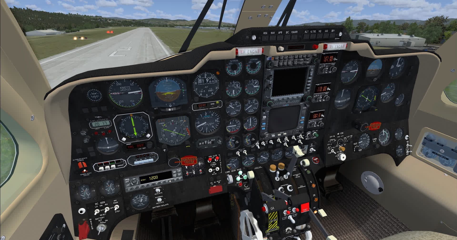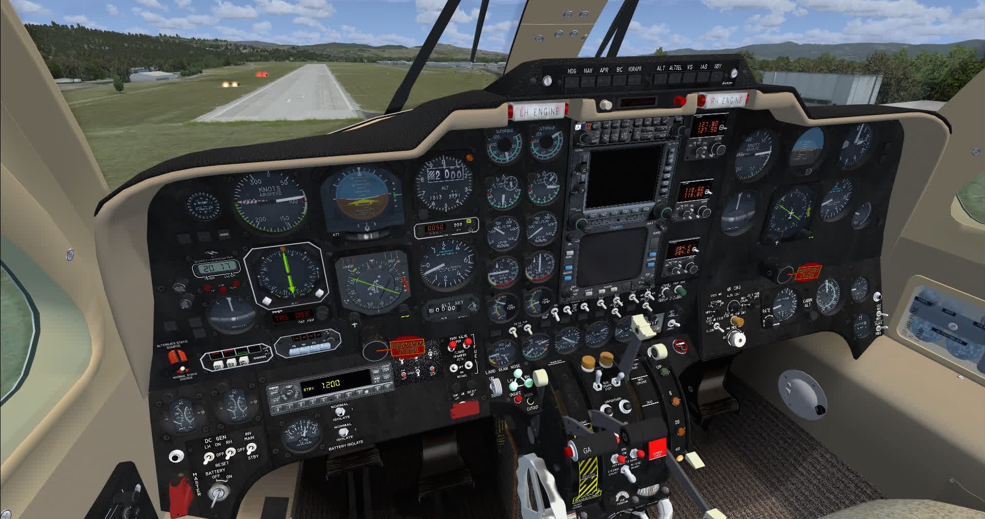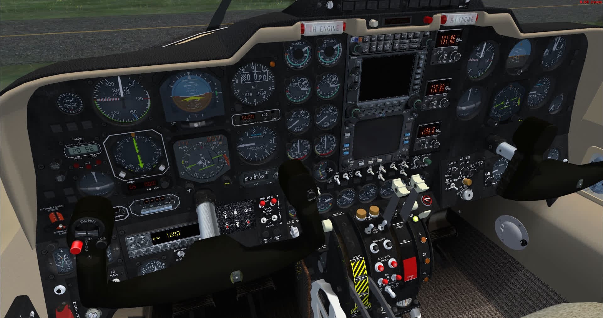 Weiterhin gibt es Konfigurationen, mit denen Reality’s XP 500 Wetterradar oder ein GTN 750 GPS verwendet werden kann – ansonsten ist das Standard-FSX-GPS montiert (und dient auch zum Einstellen von COM1 und NAV1).
