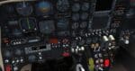 Dicht gepackt zeigt sich das Hauptinstrumentenpanel, davor befindet sich der Throttle Quadrant, darüber ein kleines Overhead Panel, das hauptsächlich für Lichter und Anti-Ice zuständig ist, auf der linken Seite ein Panel mit Sicherungen (die nicht bedienbar sind). Die Sonnenblenden lassen sich öffnen und schließen, und die Seitenfenster sind leicht getönt. Es gibt übrigens auch eine modellierte Kabine.