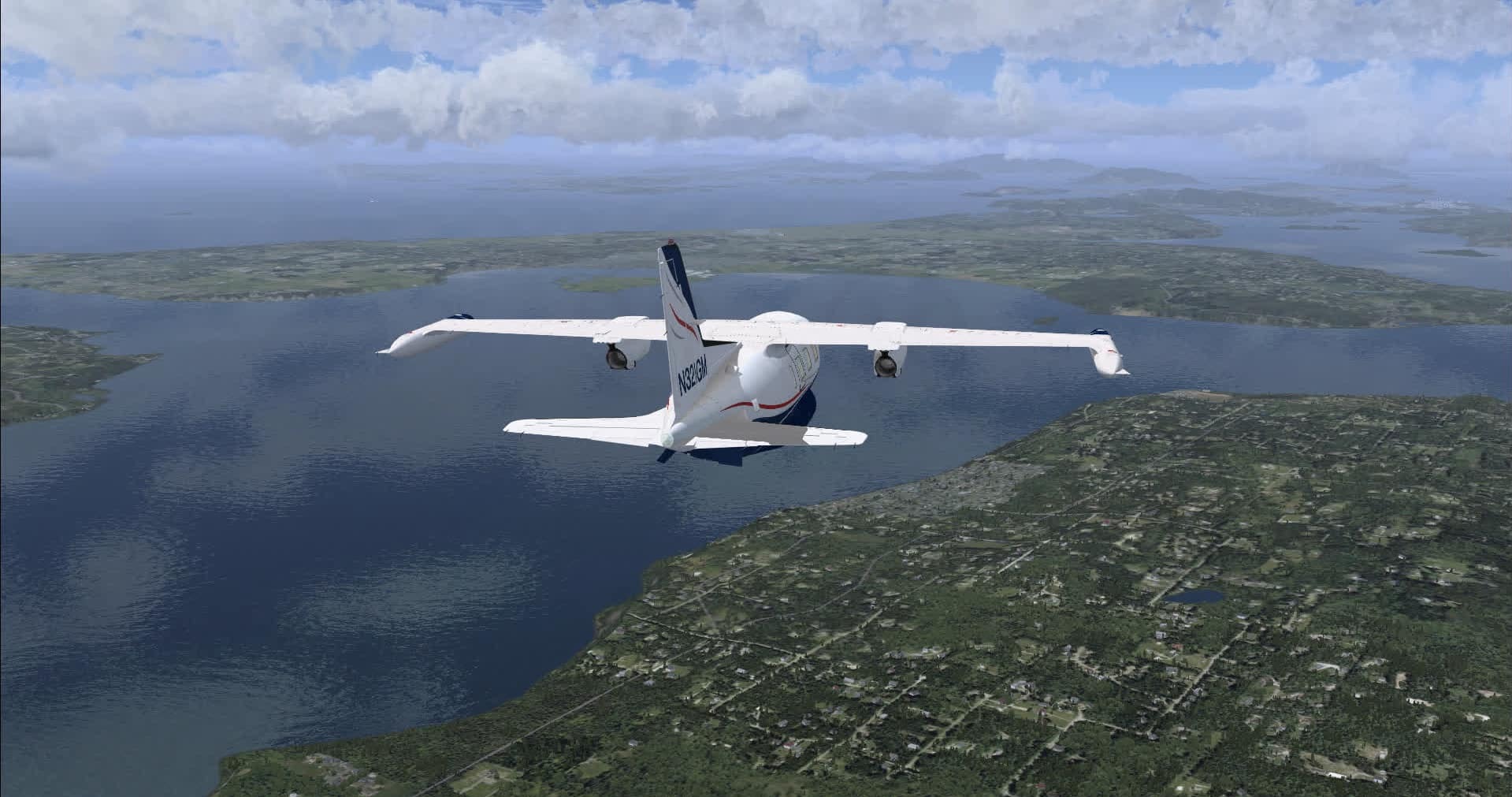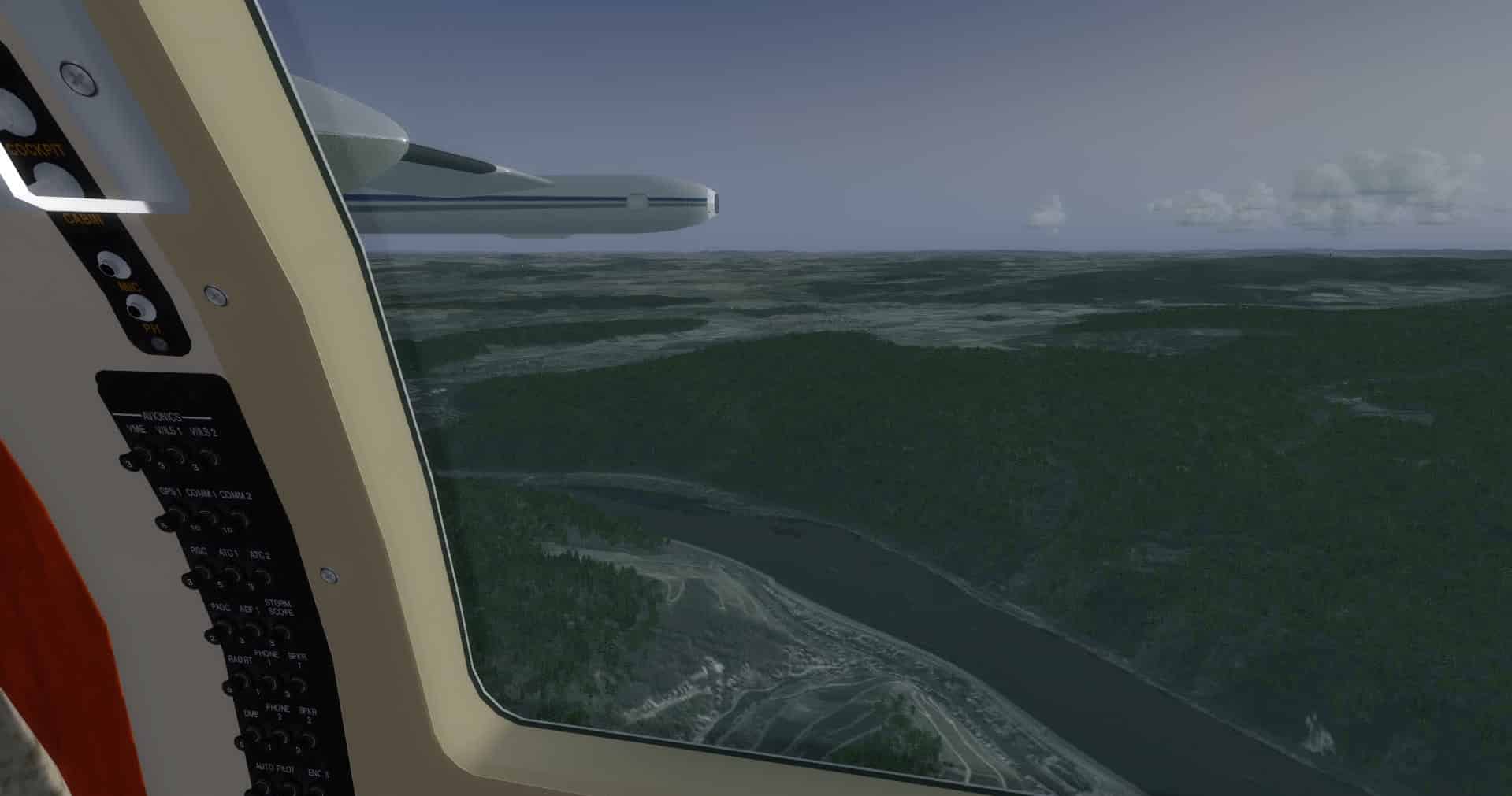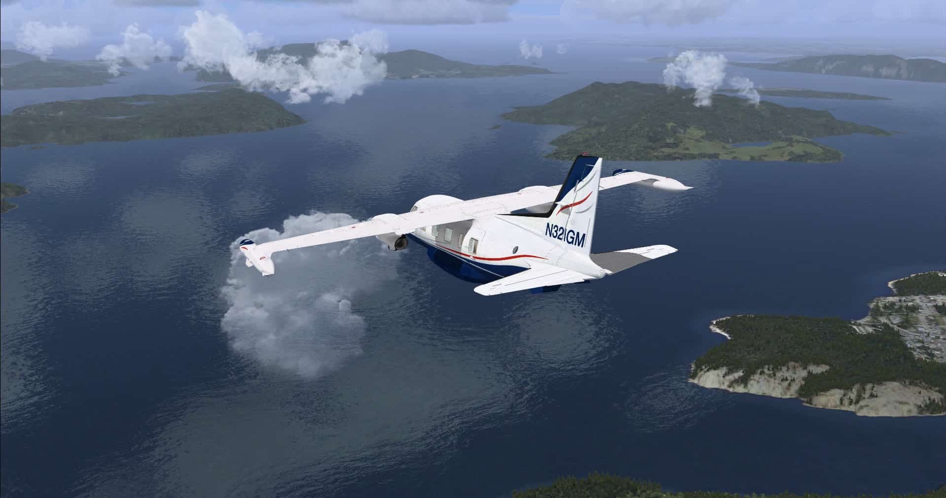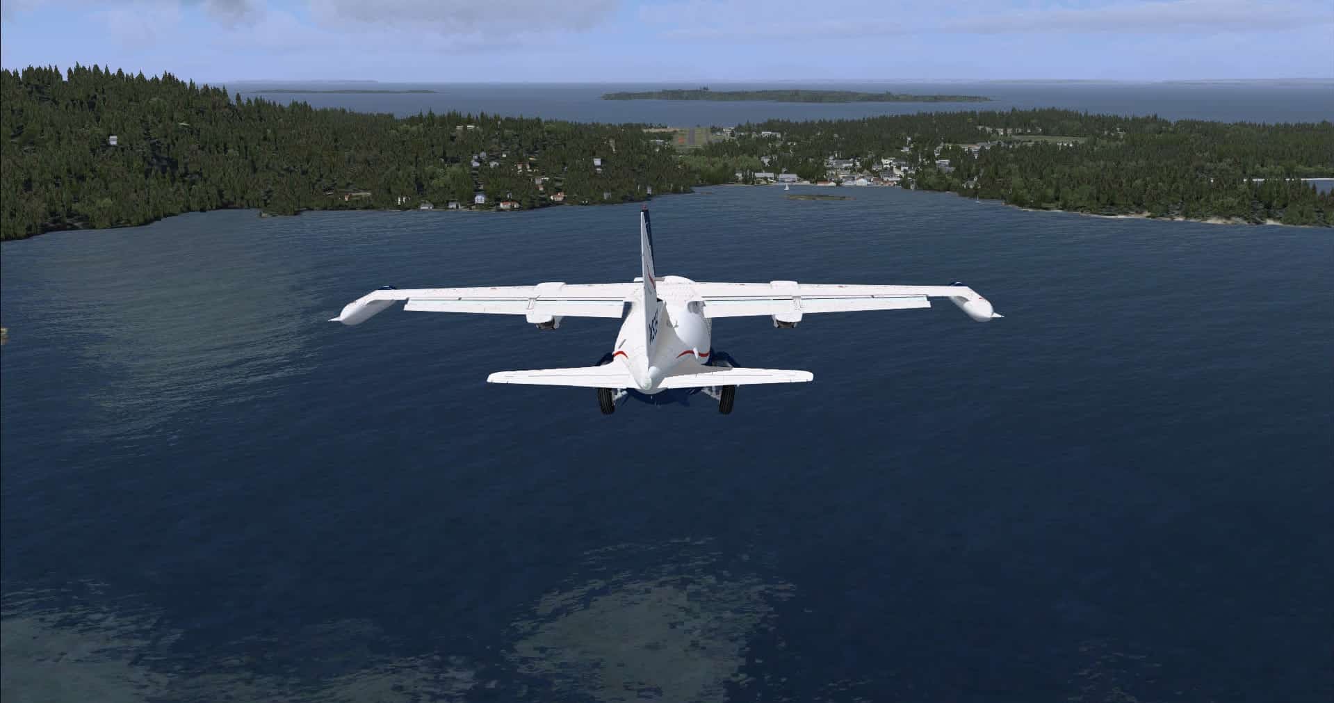 Im Flug ist die Bedienung des Turboprops sehr einfach – Schwierigkeiten mit zu hoher Turbinentemperatur (wie zum Beispiel bei der JS41 oder der Twin Otter) hatte ich nicht. Ein Turboprop erfordert ja nicht nur das Steuern des Schubs, sondern auch der Propellergeschwindigkeit. Das geschieht über die sogenannten Condition Levers. Das funktioniert leider nicht wie erwartet, denn ein Bewegen des Hebels im Bereich Cruise ändert nichts an der Drehzahl. Ein Bewegen des Hebels hin zum Bereich Taxi ändert die Drehzahl, aber es scheint keine direkten Auswirkungen auf die Turbinentemperatur zu geben. Zum Vergleich: PMDG’s Jetstream hätte schon beim Versuch mit einem Triebwerksbrand reagiert.