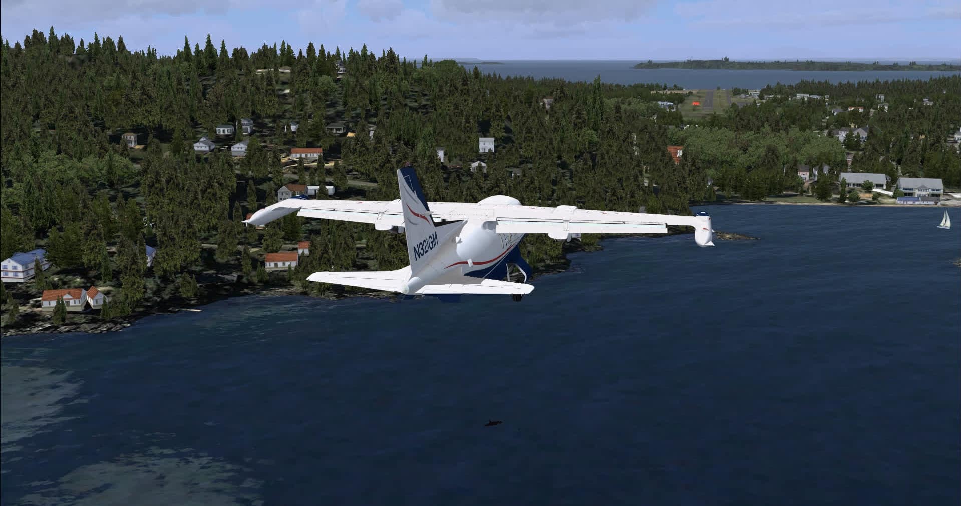 Bei Landungen zeigt sich deutlich die Nervosität – sie ähneln tatsächlich auch den Youtube-Videos aus dem Cockpit. Die Landegeschwindigkeit ist absolut nicht hoch, aber es ist schon spannend, mit knapp 180 km/h auf die schmale Landebahn von Orcas Island KORS zuzurasen. Man sollte dann relativ spät abfangen, weil das Cockpit recht tief über dem Boden liegt – Landungen klappen nach kurzer Übung recht gut und machen Spaß.