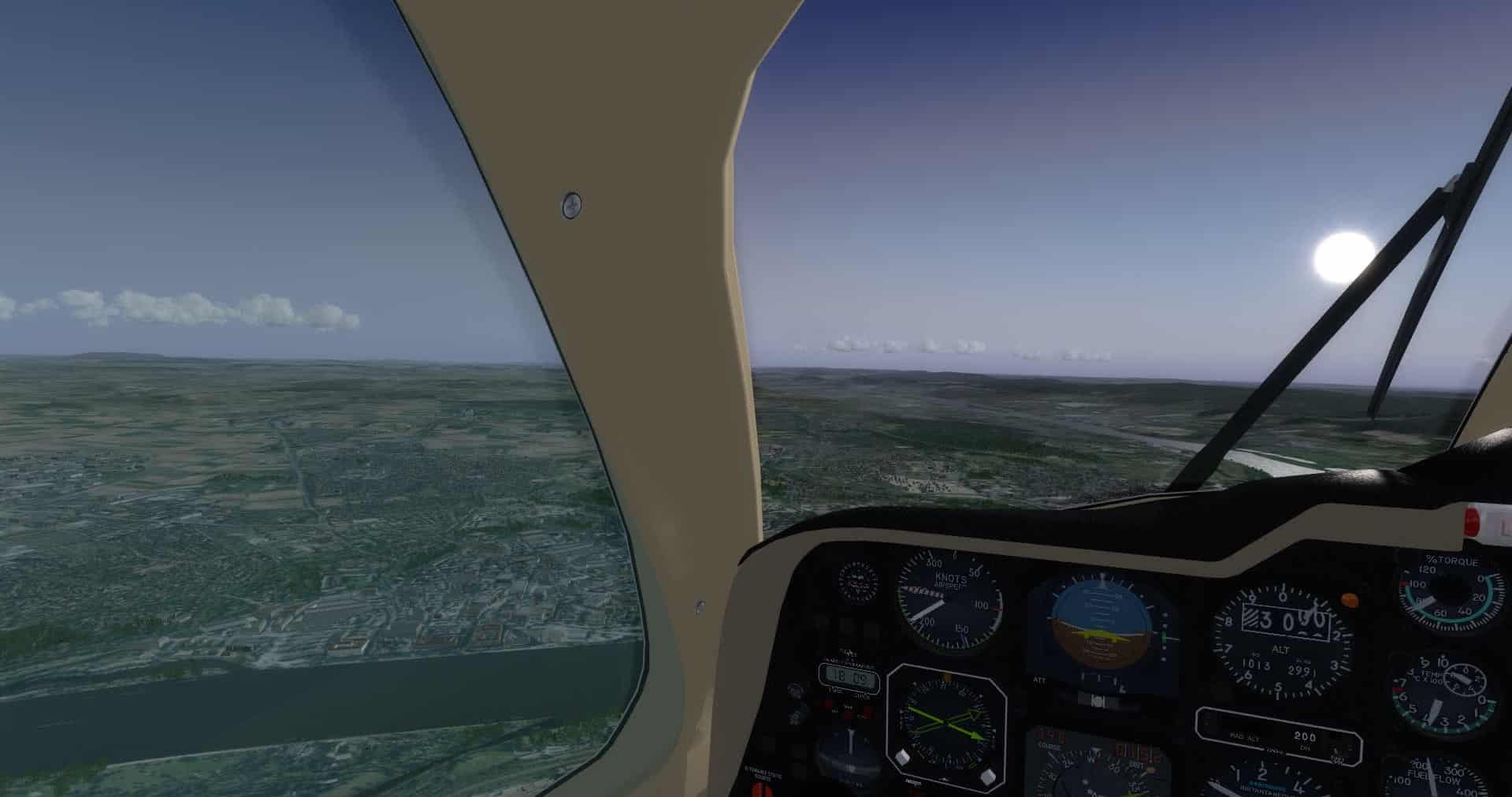 Durchweg positiv: keine erkennbaren Beeinträchtigungen der Ablaufgeschwindigkeit durch das Flugzeug. Ein Beispiel: in P3D beim Flug in 3000 Fuß (und damit da, wo viele Bäume dargestellt werden müssen) kam ich auf etwa 45 Frames pro Sekunde. Hier ein paar Impressionen aus Prepar3D 2.5.