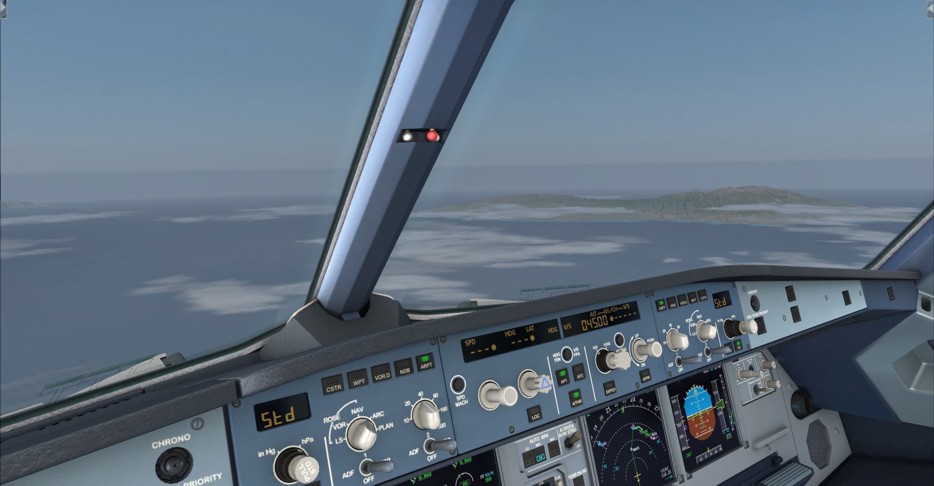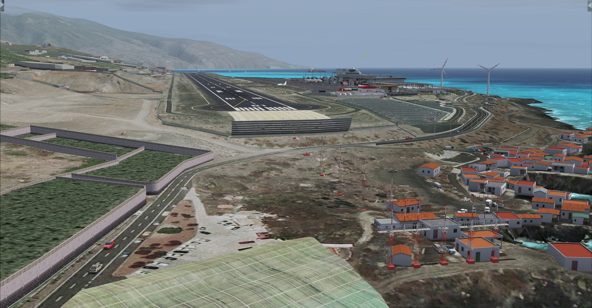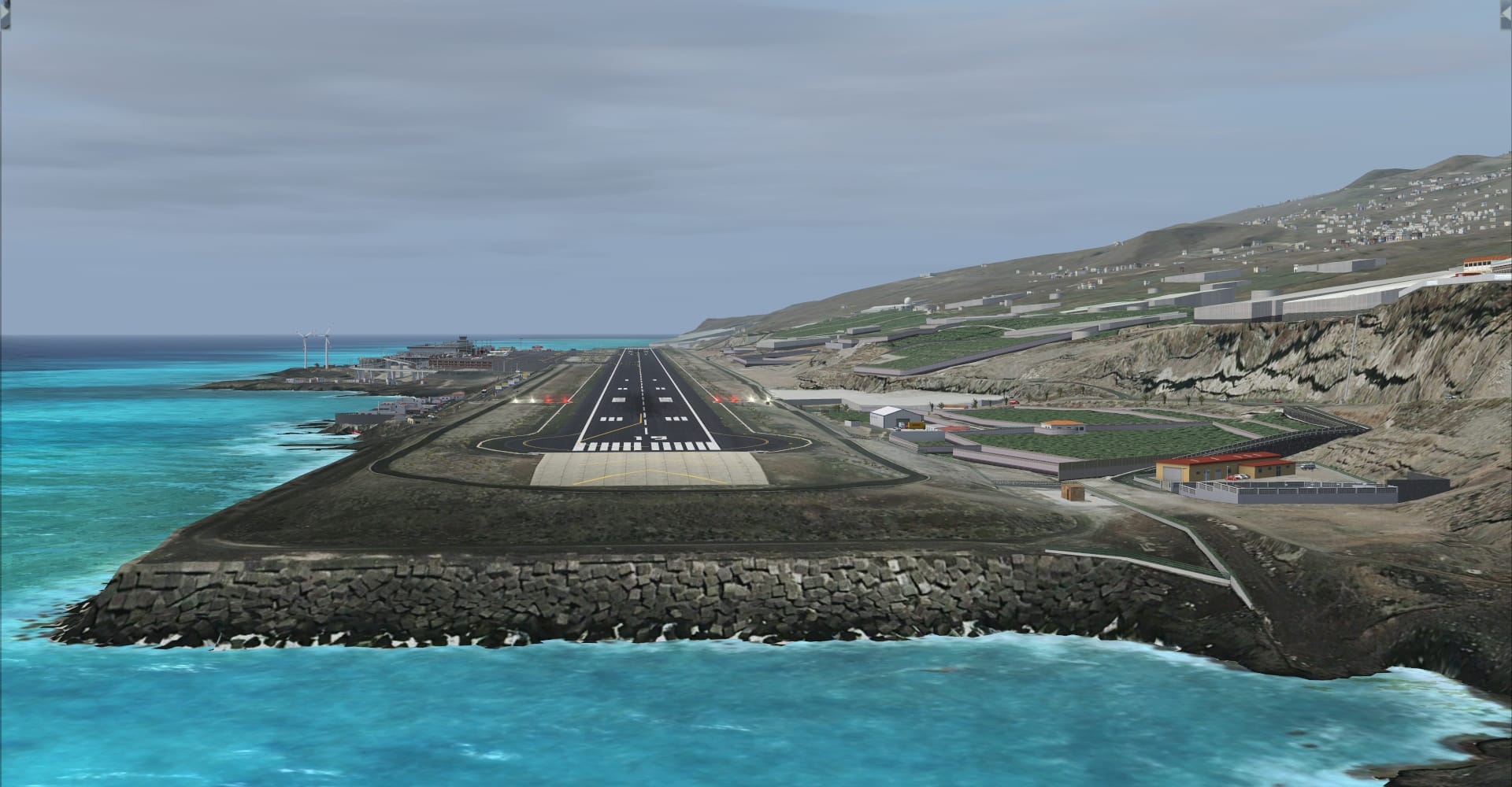 Hier ist man einmal mehr auf die PAPI-Lichter angewiesen, die den korrekten Gleitweg zur Piste anzeigen. Diese werden in der Szenerie deutlicher angezeigt als ich es von anderen Szenerien kenne. Die Lichter sind in der Ferne etwas größer und relativ hart, wechseln dann beim näheren Anflug in ein weicheres Licht. Dies sieht nach meinem Empfinden besser aus. Leider sind im Übergang von der einen zur anderen Darstellung auf meinem System die PAPI-Lichter kurzfristig gar nicht zu erkennen, was den Anflug etwas erschwert. Da der Flughafen ca. 30 Meter über dem Meeresspiegel liegt, ist auf die Höhenansagen des Radarhöhenmessers kein Verlass. Hier fehlen einem kurz vor dem Aufsetzen plötzlich 100 Fuss Höhe, wenn das Flugzeug vom Meer kommend auf den höher gelegenen Platz zufliegt.