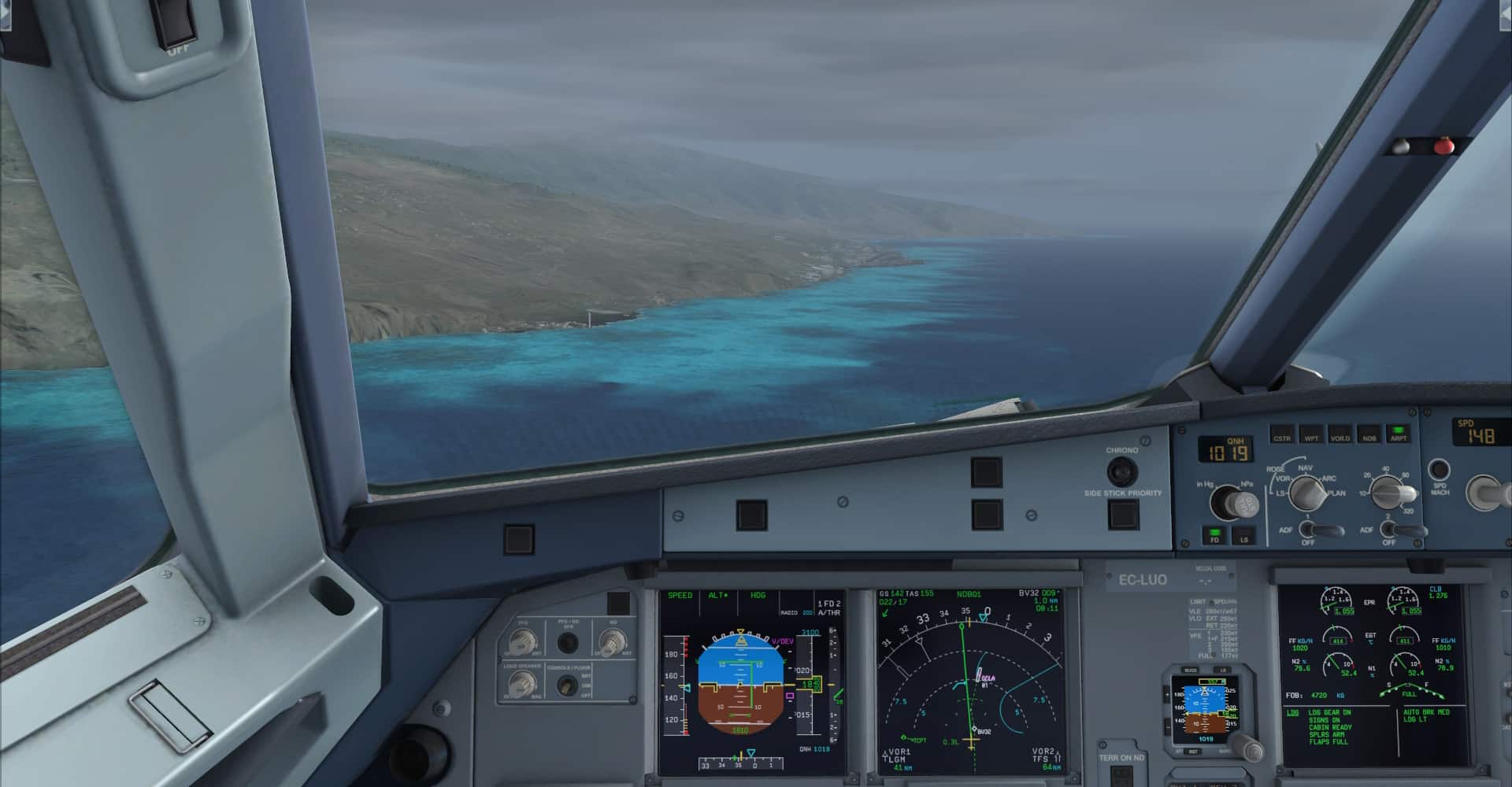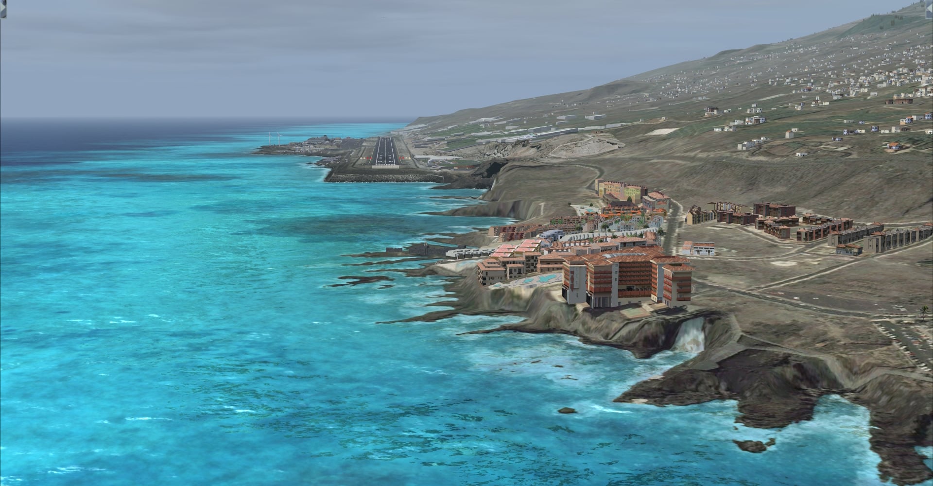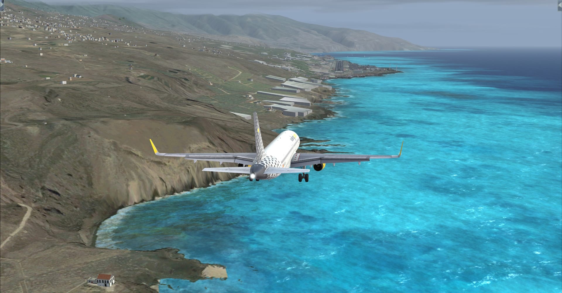 La Palma erreicht man mit den typischen Touristenbombern vom Typ Boeing 737 oder Airbus A320 aus Deutschland in ca. 4,5 bis 5 Stunden. Vollbesetzt erreicht ein solches Flugzeug schnell die Grenzen des maximalen Abfluggewichts. Eine sorgfältige Flugplanung und ein passendes Sprit-Management sind also wichtig. Bei Erreichen der Insel wird man hingegen sofort für die eher langweiligen Flugstunden über den Atlantik entschädigt. Das mitgelieferte Mesh gibt die schönen Konturen der Insel mit all ihren Details wider und die vollflächig fotorealistischen Bodentexturen zeigen eindrucksvoll den vulkanischen Charakter von La Palma. Die höchste Erhebung von La Palma ist immerhin bei 7949 Fuß.