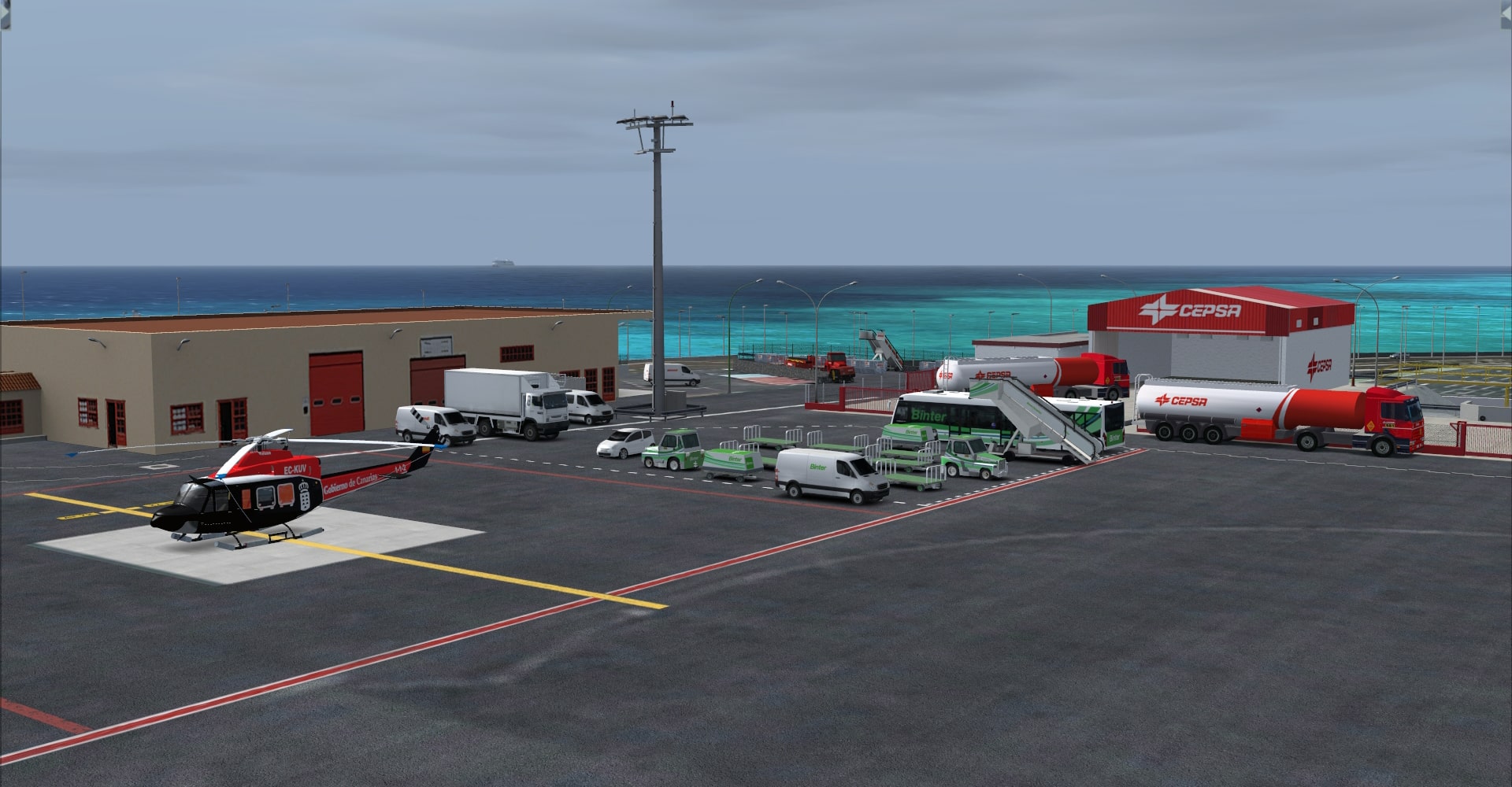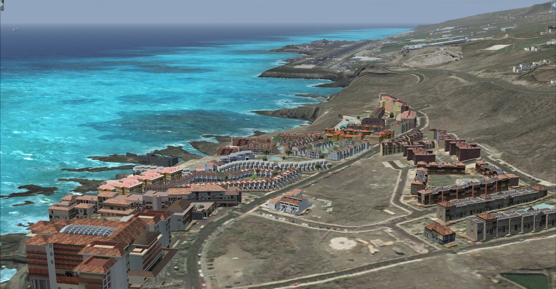 • Darüber hinaus sind alle wichtigen Hafenanlagen, Sehenswürdigkeiten in Santa Cruz, die Teleskope auf dem Roque de los Muchachos sowie die Appartementanlagen im Anflug auf Rwy 19 als 3D Modelle vorhanden.