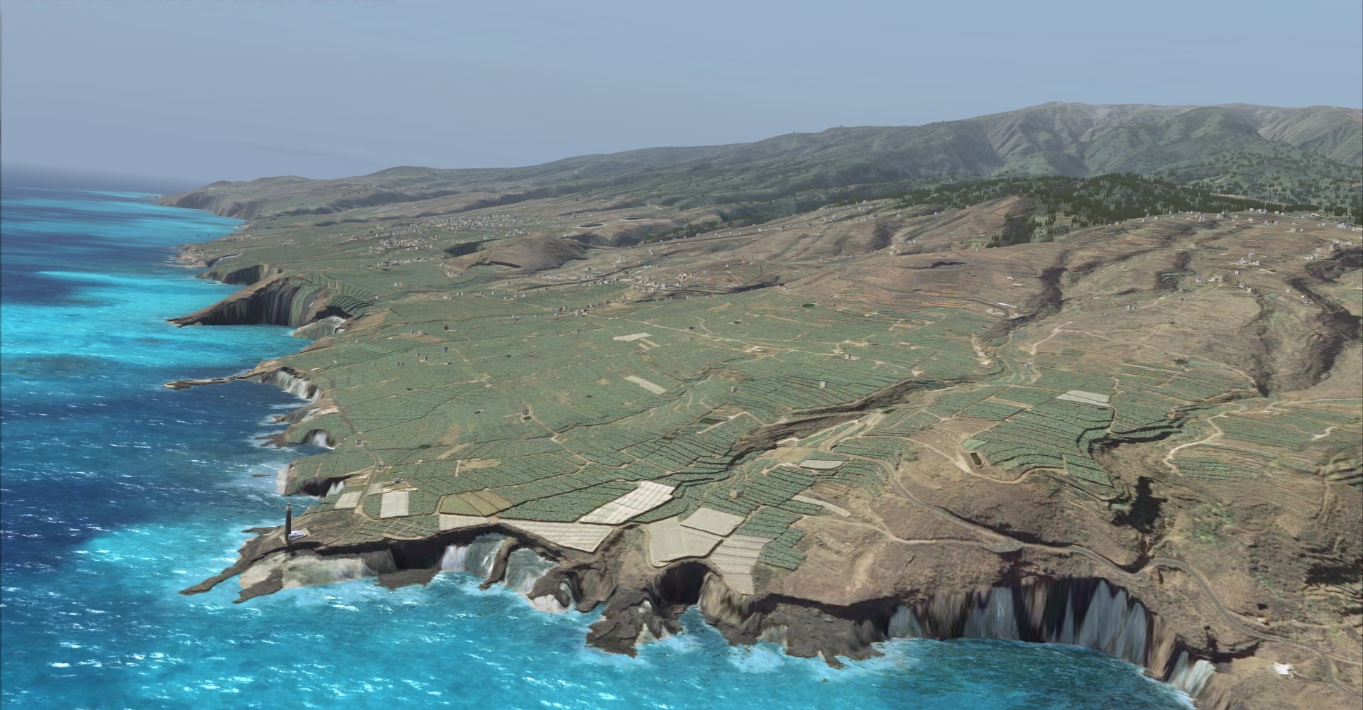 • Hochauflösende Bodentexturen auf Luftbildbasis mit einer Auflösung von 25cm/Pixel für die nähere Umgebung des Airports La Palma; 0,5 m für den Rest der Insel
