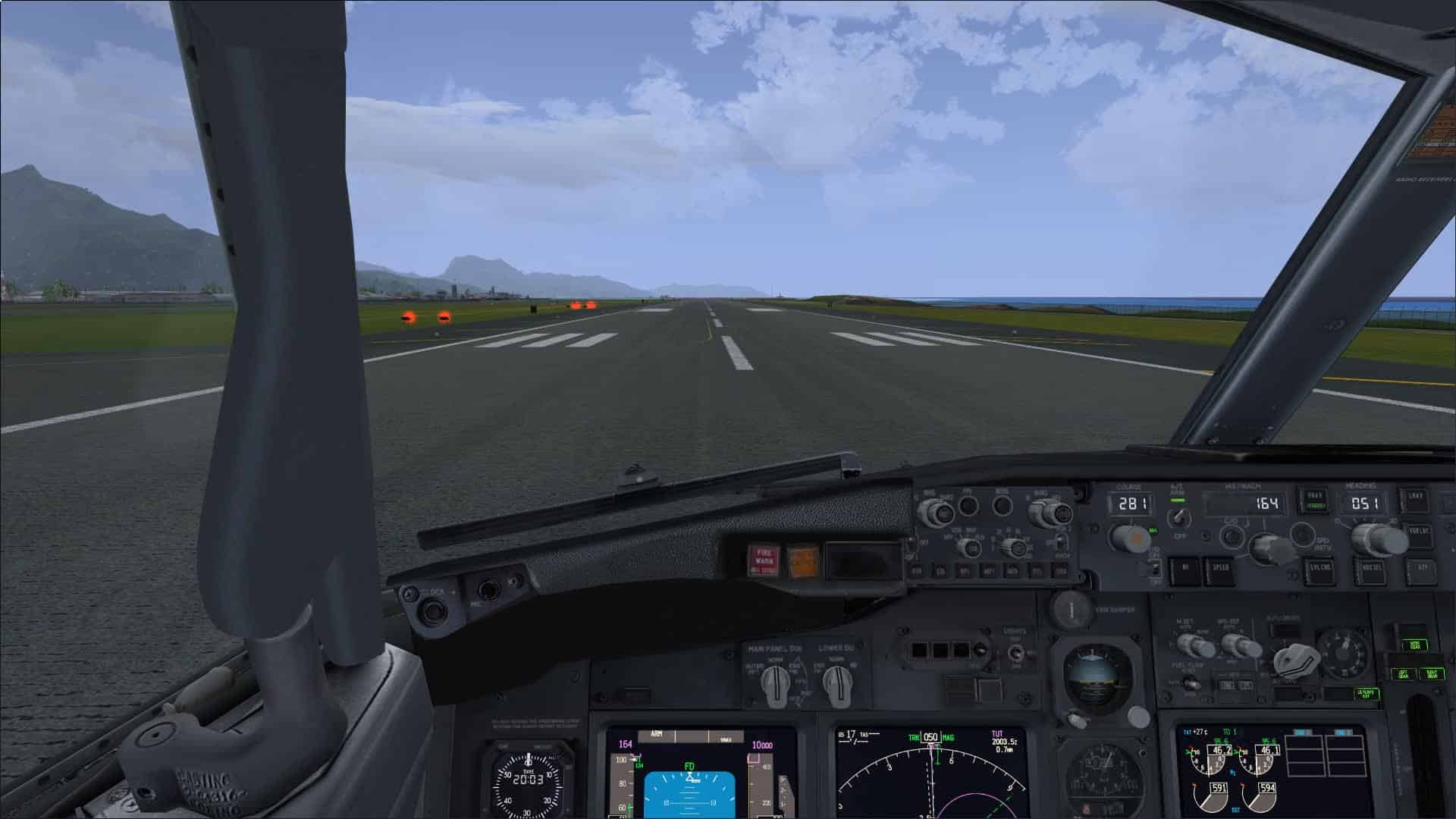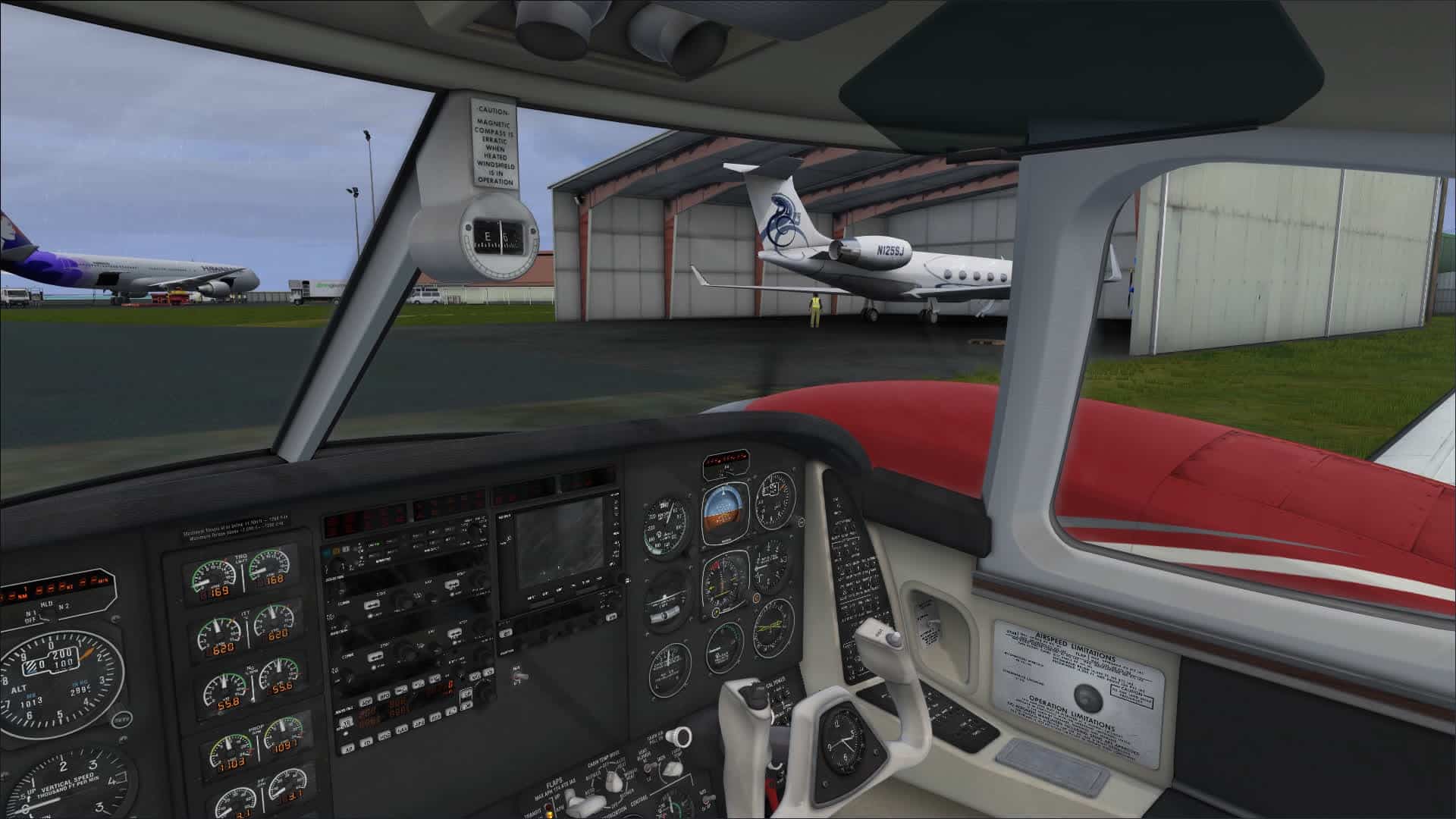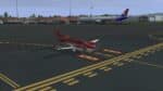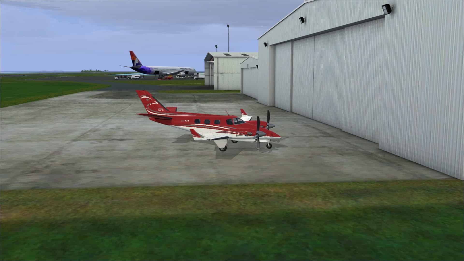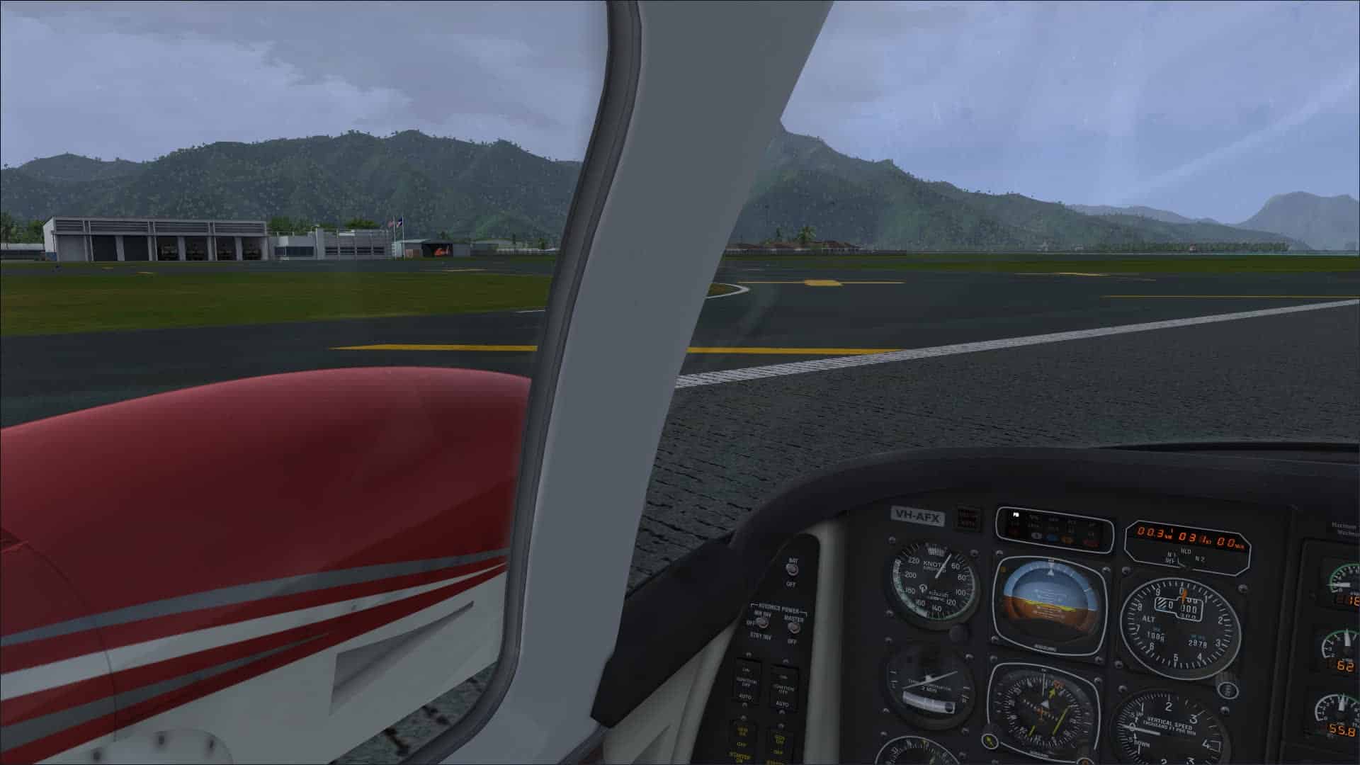 Der Flughafen von Apia ist zwar modelliert, aber die Landebahn scheint FSX-Default zu sein, und die Fototextur ist deutlich weniger hoch aufgelöst. Ein Qualitätsunterschied zu Pago Pago ist daher beim Landen erkennbar. Der Flughafen selbst (Vorfeld und Empfangsgebäude) ist aber ausgiebig mit Gebäuden, Menschen und Flugzeugen ausgestattet und auch aus der Nähe schön anzusehen. Schade eben, dass auch die Rollfeldtextur sehr grob ist. Aus dem Cockpit sieht die Wiese nicht wirklich schön aus.